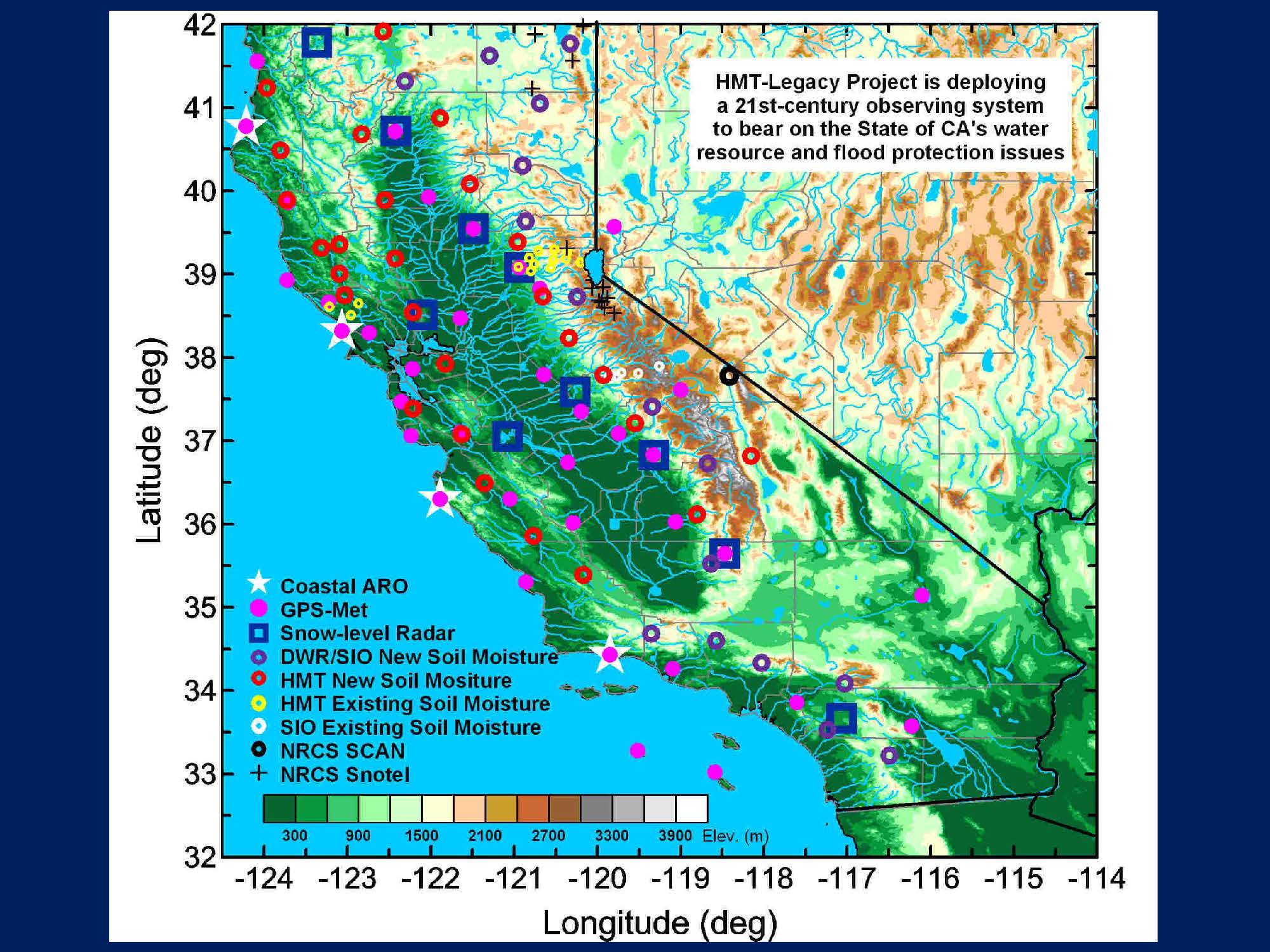 “Back in November [2012], right before the American Geophysical Union’s fall meeting in San Francisco, we were doing a press conference to announce this network, and lo and behold, Mother Nature was kind enough to give us an event to demonstrate,” he said. He presented a map that displayed the water vapor sensors during the storm. “That sensor is looking up and if you took all the water vapor above that sensor, squeeze it out, that’s how much is over that, so you take that inch and multiply that by the miles and you realize all of that’s being driven up against a mountain range in a much smaller space, you’re converging that water and creating a very effective way to create precipitation and runoff,” he said.