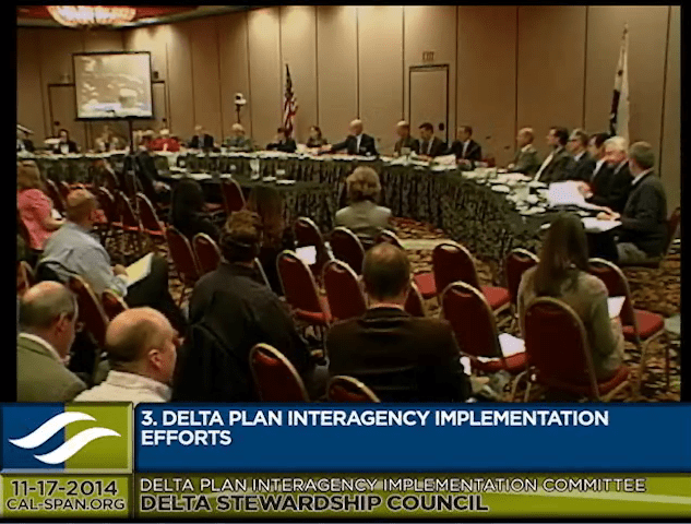 On November 17, 2014, the second meeting of the Delta Plan Interagency Implementation Committee was held. Among the agenda items was an update on the implementation of the California Water Action Plan, a briefing on activities underway in the Yolo Bypass, presentation of the interim science action agenda, and an update on efforts to develop a investment strategy and study the possibility of creating an assessment district for Delta levees.