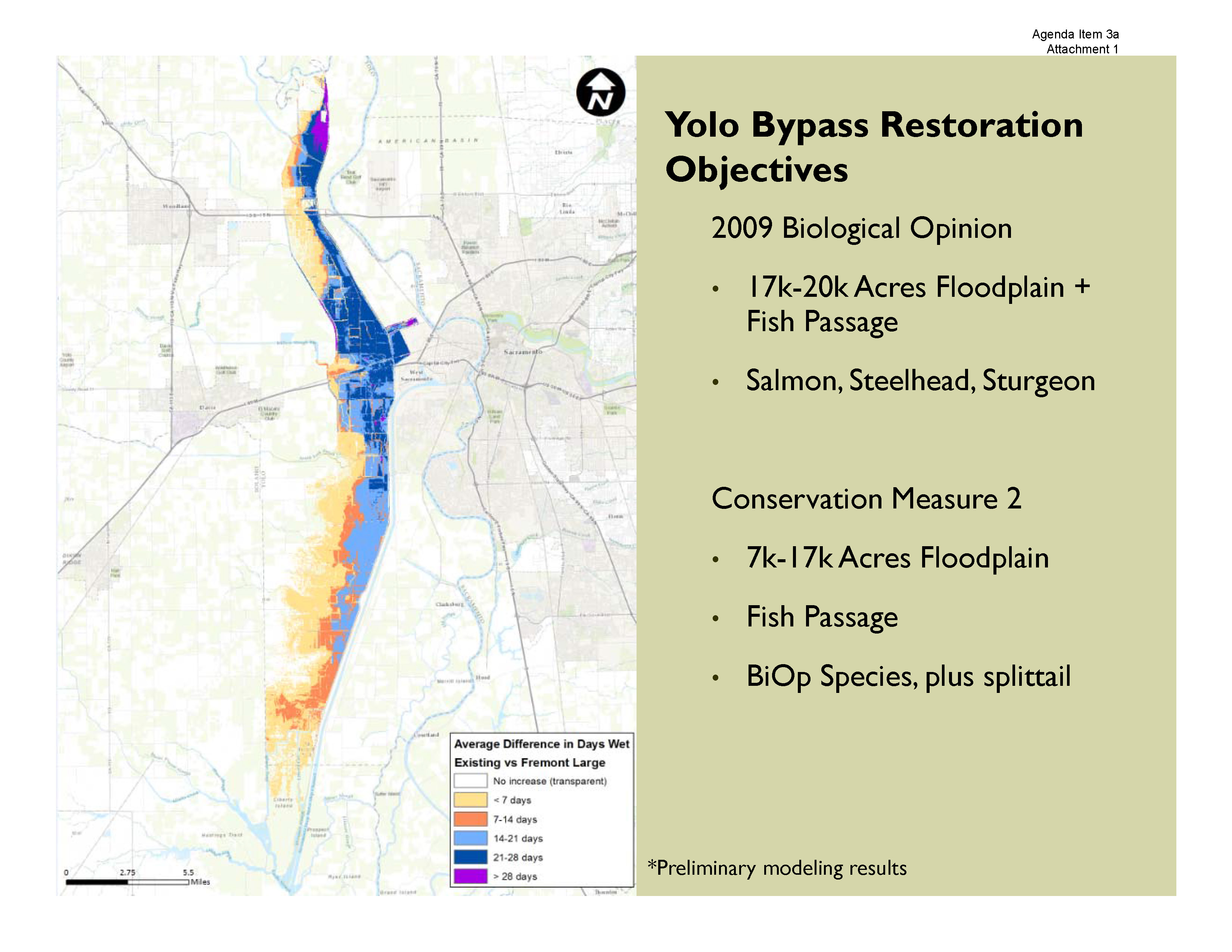 Mr. Tjernell said that the Bureau of Reclamation’s value planning process recently completed their work, holding a briefing on October 31st to collect feedback. “Essentially, a group of local and regional interests along with with state and federal interests came up with concepts ways for the state and federal agencies to move forward on the biological opinion process specifically, and at the same time, really achieve local and regional interests,” he said. “I think it really served as a wakeup call in many ways to a lot of the folks who were involved in that process that was that there is actually a way, at least conceptually, to do ecosystem restoration in the bypass that also achieves state, local, regional flood management objectives and the preserves the ongoing productivity of the Yolo Bypass as an agricultural center for California, or at least for that County. It was a very creative process and a lot of great ideas bubbled up from that.”
