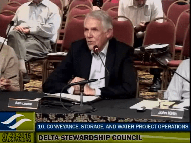 Dr. John Kirlin began by noting that the Council is working within the context of the Delta Reform Act and talking about amending the Delta Plan. “Your responsibilities are statewide, and there is a lot of storage and conveyance statewide,” he said. “The through-Delta is particularly important – it’s called out in several places in the plan, including the last section.”