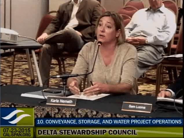 “The real bridge between water supply reliability and ecosystem restoration absolutely is operational flexibility, so to what degree does a conveyance proposal offer an ability to operate the system more flexibly,” Ms. Nemeth said. “That is only as good as how transparently it’s operated. People need to have confidence that it’s going to operate in pursuit of both the ecosystem restoration goal and the water supply reliability goal and of course part and parcel to that is both transparency but also a real integration of adaptive management.”