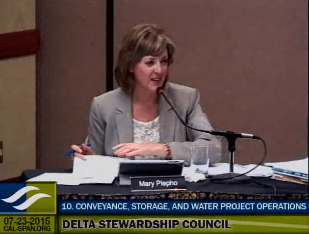 “First, our role and our relationship to the administration’s proposals, both Water Fix and Eco Restore, have changed from the specific pathway described in the Delta Reform Act to the requirement of the standard consistency certification applicable to every project that meets the definition of covered action under the law,” she said. “The reason we’re discussing this issue now is the change in the approach triggered a provision that we had included in the Delta Plan to revisit the issue of conveyance and perhaps take council action to facilitate improved conveyance, which is what we say in our appendix A of the Delta Plan, should the BDCP not go forward by a conservation plan by a date certain. Because the Reform Act required non-discretionary inclusion of the Bay Delta Conservation Plan into the Delta Plan if it met certain criteria, we were reluctant at the time to include what could have ended up being duplicative or perhaps confusingly contrary recommendations regarding conveyance and its operations.”