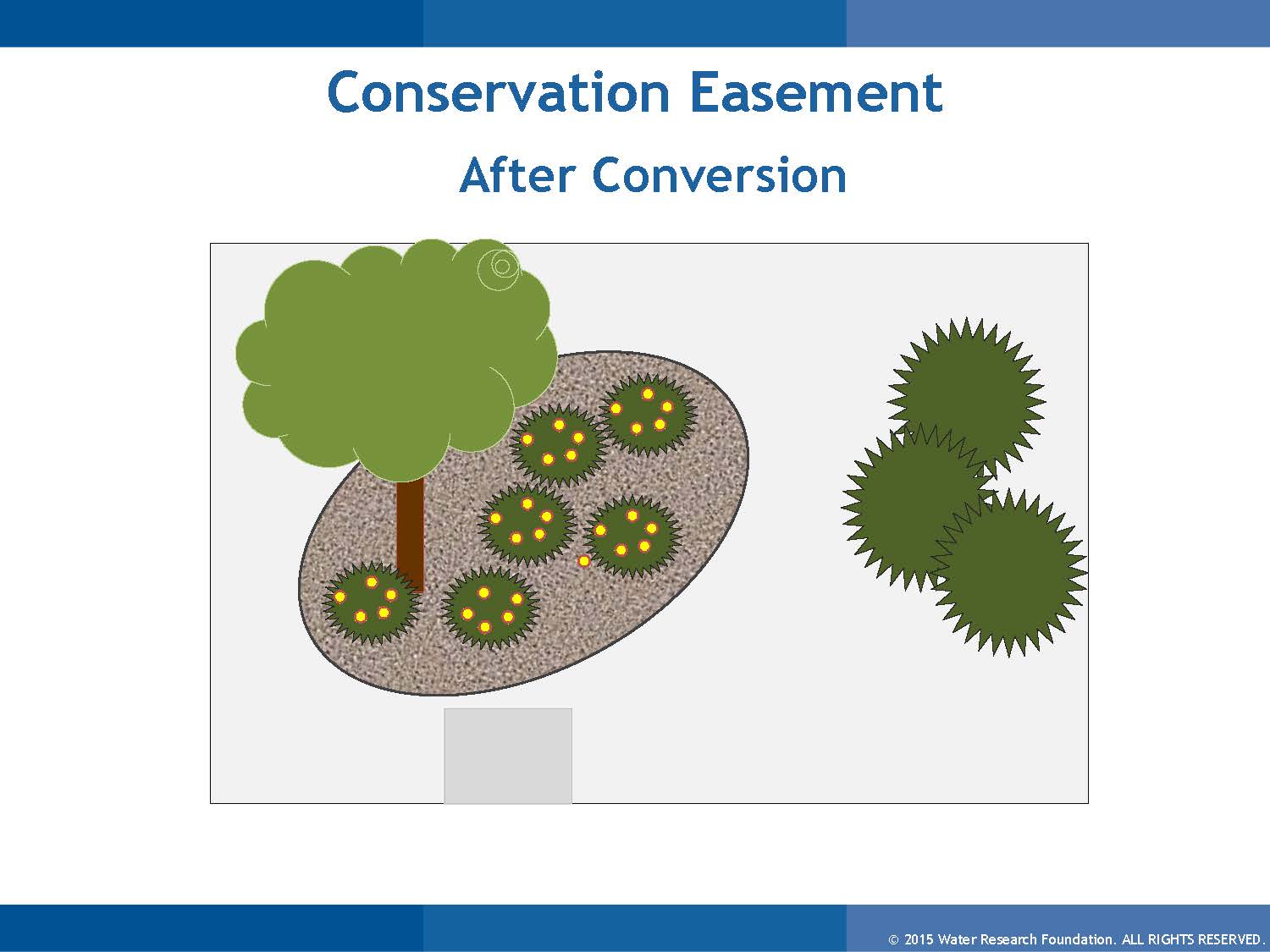“The current version of the program is somewhat unique in that it relies on bond funds, and for these we actually have a requirement to maintain the landscape in perpetuity, thus the easement,” he said. “Our bond counsel determined we can use bond funds but we have to encumber the landscape areas of the conversion, somewhat analogous to how you would encumber a water treatment plant when you use bond funds to make a capital improvement. For this it means maintaining a conversion area of a property in certain non-water using capacities. So our easement funds with the land in perpetuity regardless of ownership changes; it can however be modified or even waived by returning the funds and paying fees and interest. So hopefully though, most people will simply install any additional changes to the landscape in areas that are not in the conversion area.”