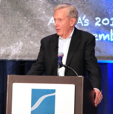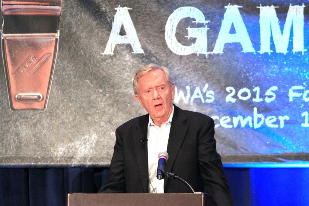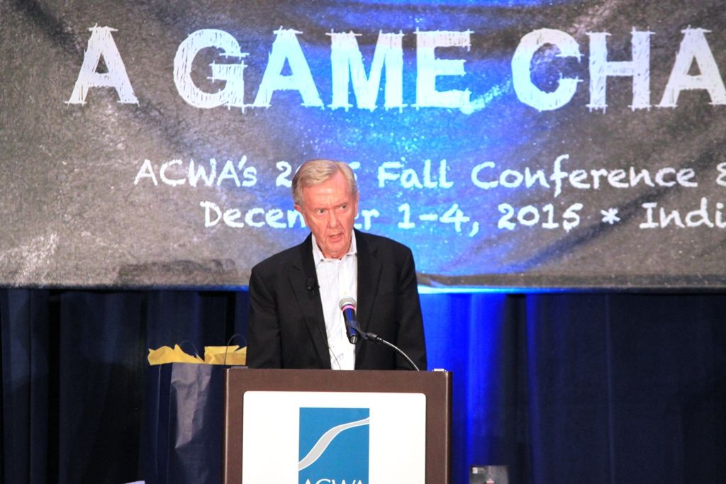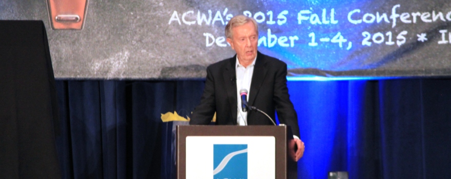 Outgoing ACWA president Tom Coleman introduced Secretary Babbitt, noting that he has had a longstanding relationship with California. “As Secretary of the Interior from 1993 to 2001, the Secretary probably spent more time in California than in DC or in his native home state of Arizona,” he said. “We have never seen a more active interior secretary in our state. During his tenure, Mr. Babbitt engaged constructively on addressing negotiation agreements on the Bay Delta and the Lower Colorado River. While governor of Arizona, he was instrumental in the enactment of the Arizona groundwater management act of 1980, and that’s part of the reason Arizona is doing relative well in the current drought that we’re all facing here in the West. Now the Secretary will provide his unique perspective on water issues and the environment. Please give Secretary Babbitt a very warm welcome.”