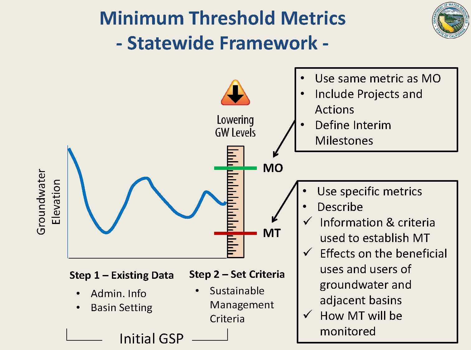 The minimum threshold (MT) and measurable objective (MO) are the points the locals determine within the defined metric or yardstick. “It’s where you are on the yardstick and each basin will be different,” he said. “Each basin will have a minimum threshold that is set in a different spot, but they still have to go through the same framework and so it will be consistent and there will be some standardization statewide.”