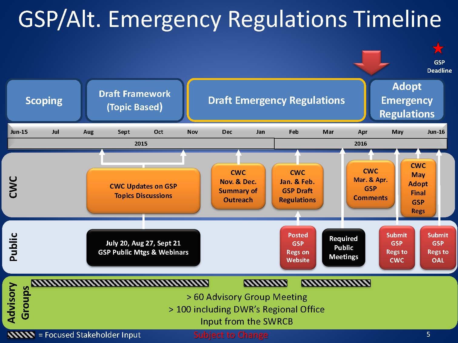 “The monitoring requirements that are in the current draft of the GSP regulation are potentially duplicative of the monitoring requirements of these existing water quality programs, so based on those comments, we are considering revising the water quality monitoring requirements to make sure they are consistent with these existing water quality programs, and the ability for local agencies to incorporate that existing monitoring network as part of their GSP.”