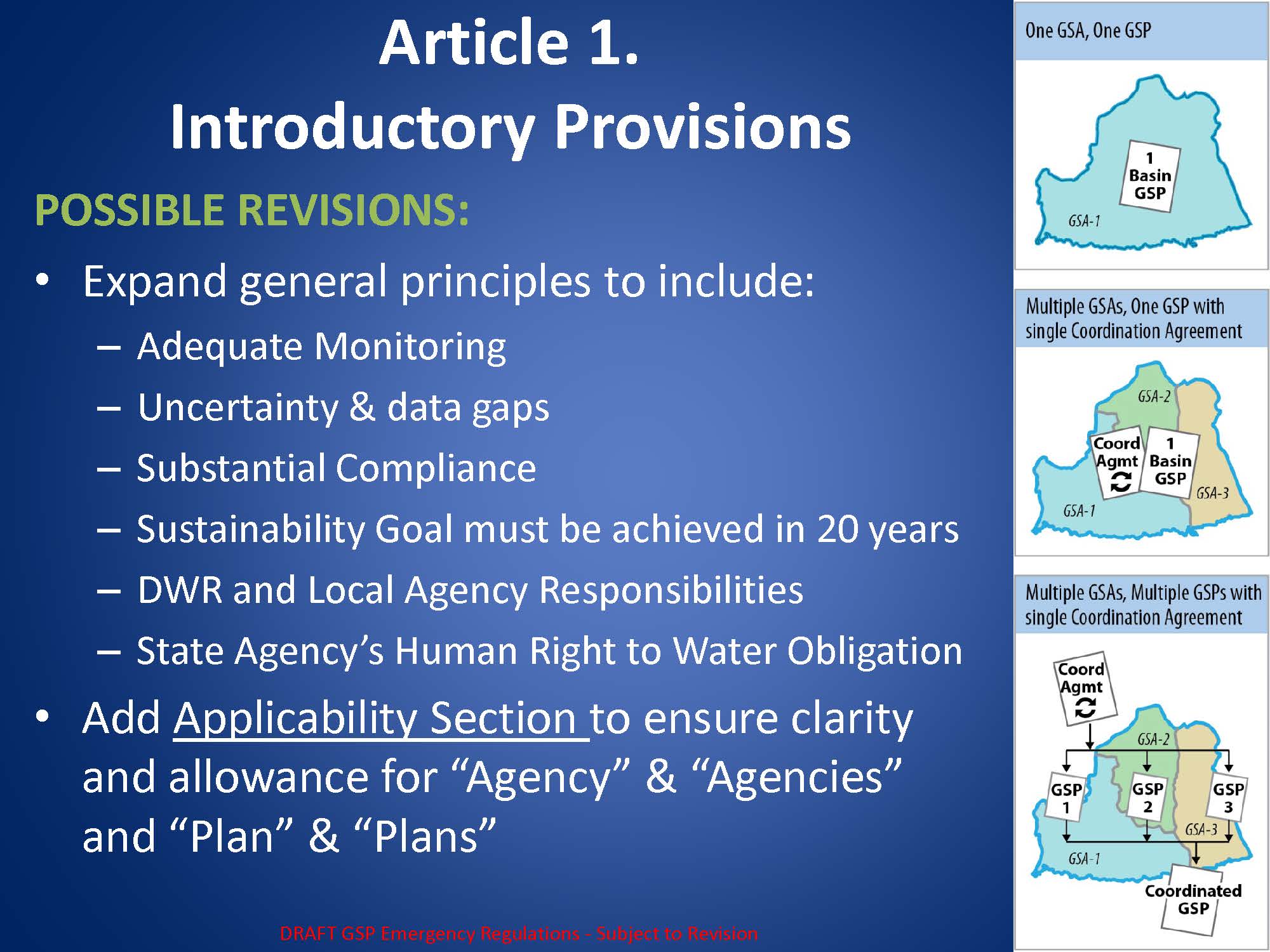 Some of the comments received on this article were that the creation of a coordinating agency is not supported in SGMA and that it creates an unnecessary hierarchical governance structure that’s challenging and unnecessary to create. Other comments addressed the coordination agreements, with some saying it was overly prescriptive, and others saying it was the appropriate level of coordination as intended in SGMA.