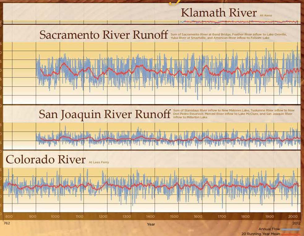 In the relatively short approximately 100 years of a historical record as compared to the long-term reconstructed paleo records, the drought in the 1920s and 1930s was on par with some of the biggest droughts in the reconstructed records in terms of the lowest ten year averages. “Of course, none of us were around in the 1920s and 1930s so we don’t personally have an experience of how severe that drought was, but that was at a time when California’s population was only about 6 million people and irrigated acreage was less than half of what it is today, so the impacts of that drought were, relatively speaking, a lot less then what we have to manage for now,” she said.