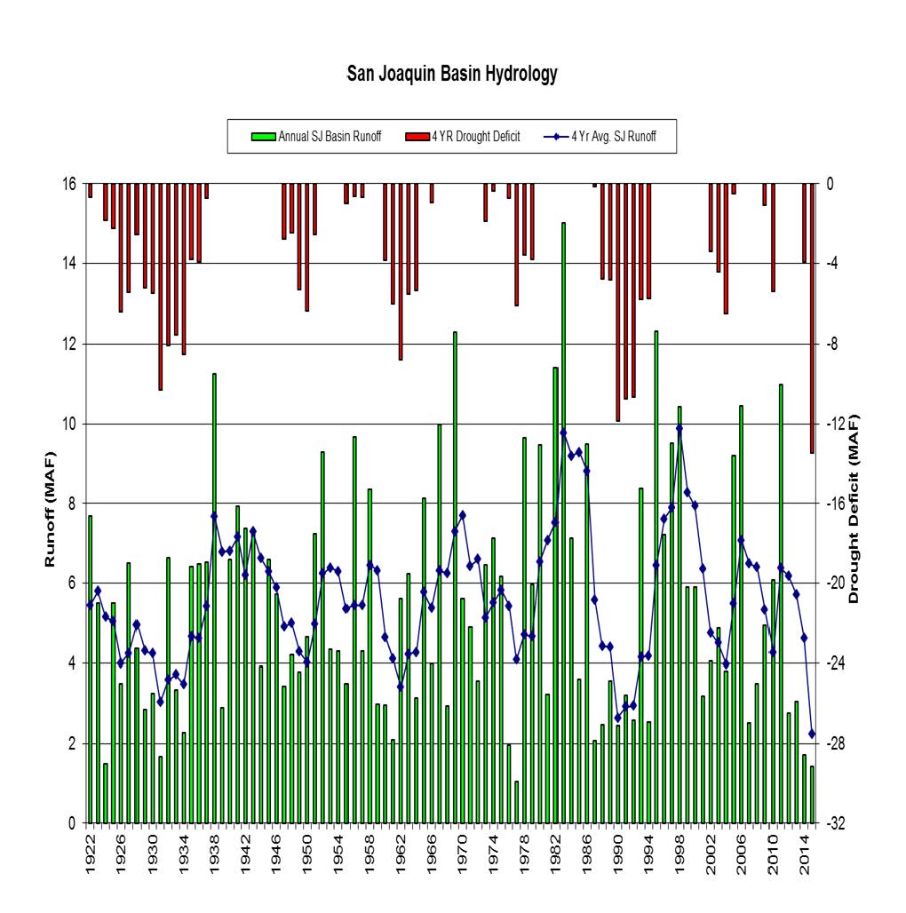 He presented a similar slide for the San Joaquin precipitation index, noting it is more concerning for the San Joaquin River basin, which is in even a more severe state than the late 90s and even the 30s drought. “We’re seeing some numbers that given with the cumulative years 07 to 15, quite a bit of a deficit there. And we’re still seeing that. And when we take that and pair it up with the biological opinions and our Delta operations in the winter and into the early spring, that’s going to bode for some more difficult times, when we get into that period next year, I think. Unless we get a good reset.”