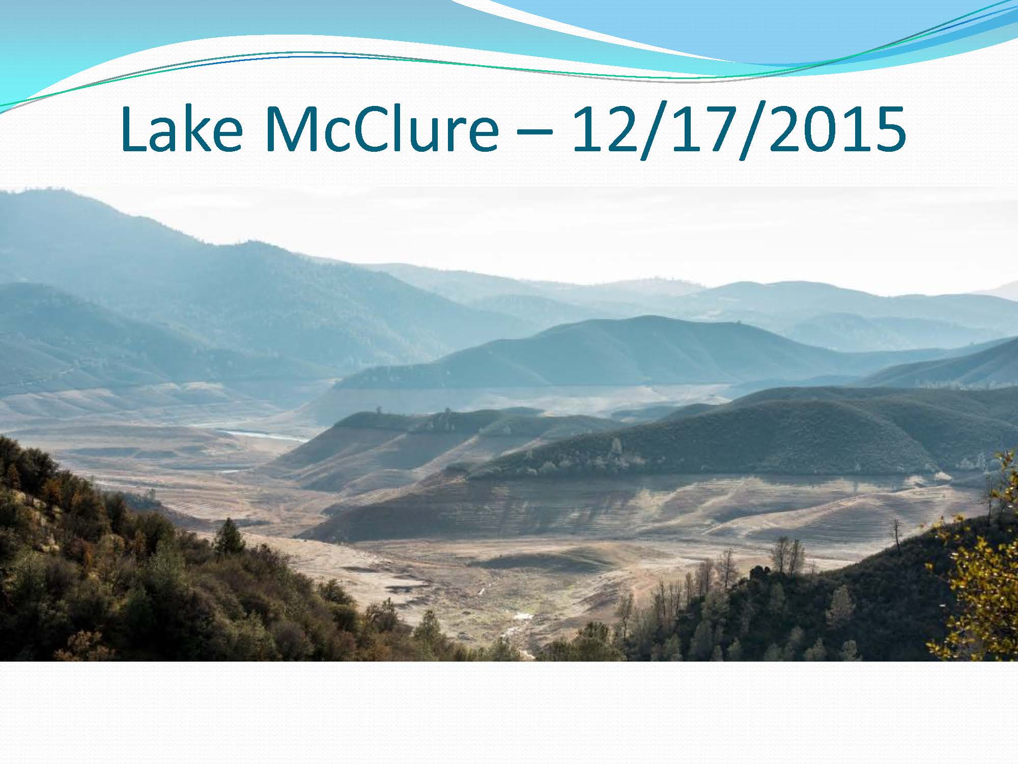 Ms. Ravazzini ended by presenting a picture of Lake McClure. “This was December 17, 2015, so this is a natural fill, multipurpose reservoir. It’s used for domestic purposes, agriculture, recreation, hydroelectric needs. It’s fed by the Merced River, and this is one of the few storage facilities in the state with a million acre-foot capacity. It was about 64,000 acre-feet when this picture was taken, and that equates to about 6% of its total capacity. Agricultural users of water of this facility had no irrigation season last year, and the Lake Don Pedro Community Services District, which serves 3200 people in the area, had to utilize floating pumps to continue providing water to its residents. Today, there is about 483,000 acre feet in this facility.”