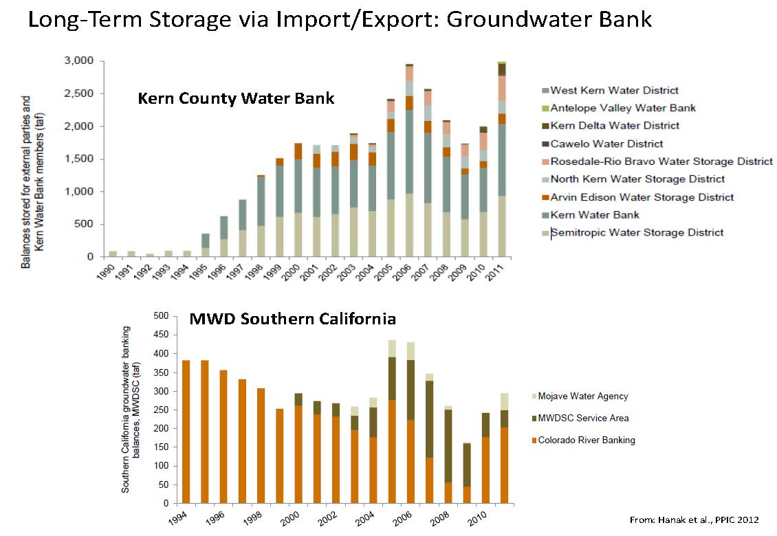 There are groundwater banks in the state, particularly in the southern San Joaquin Valley and Southern California that have space in their aquifers to store groundwater, and they can bank groundwater for an agency that may be 100 or 200 miles away and store that groundwater for use during drought, he said. “These water banks often operate either by flooding recharge basins or by using injection wells with water that is of sufficient quality is directly injected into the aquifer and then later recovered from that same well.”
