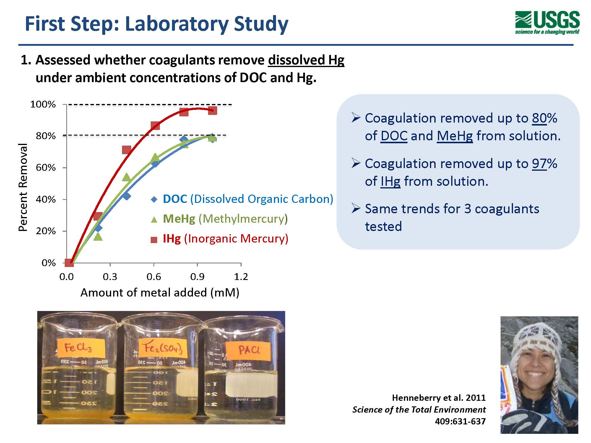 Dr. Tamara Kraus with the USGS presents the latest laboratory and field test results using metal-based salts as a coagulant for mercury removal