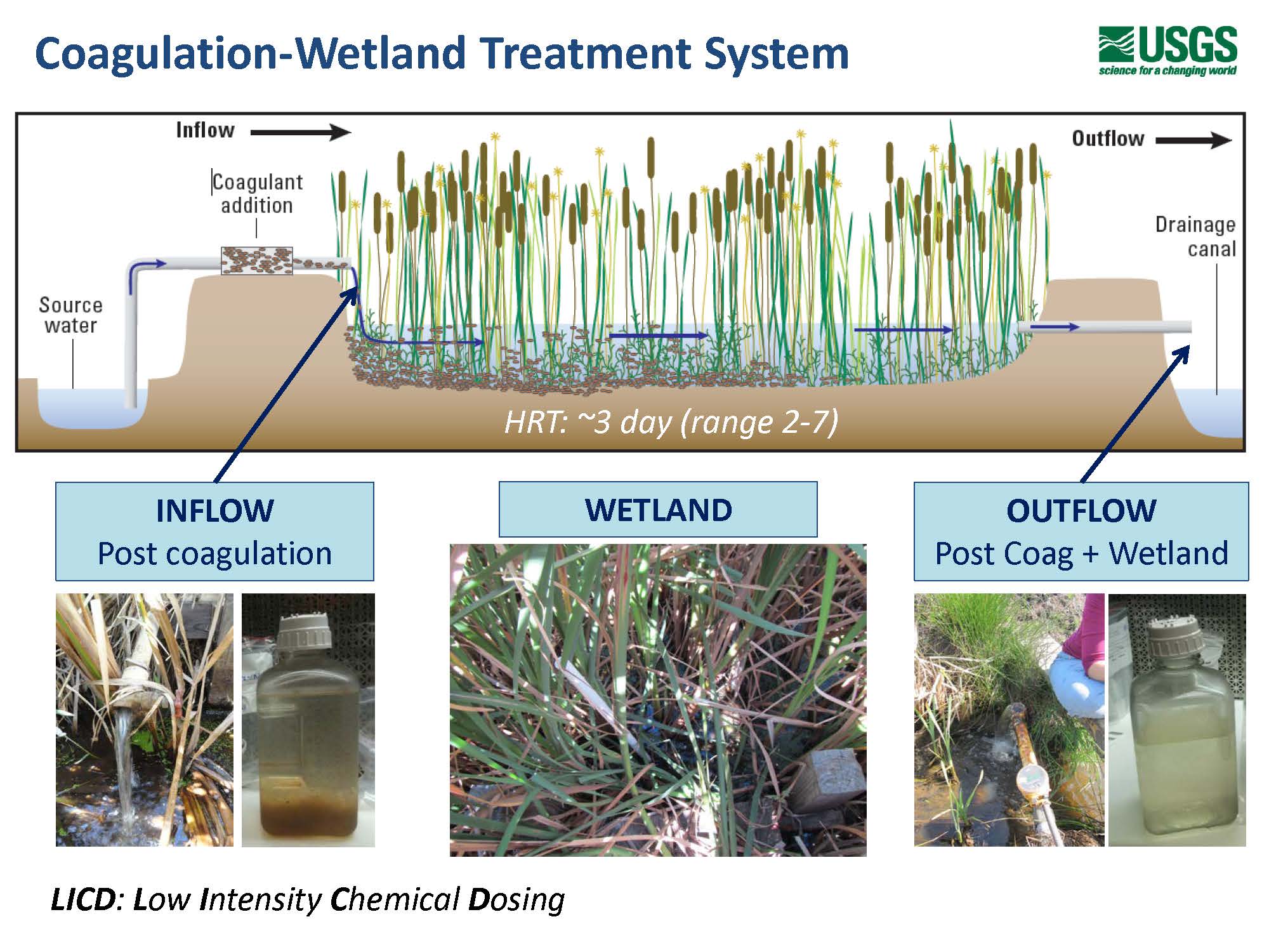 So in summary, there are two approaches with coagulation, Dr. Kraus said. “One is to think about it as just a treatment coagulation alone, what does that do,” she said. “Maybe you would collect the material in a concrete basin and dispose of that offsite, or maybe you do want to collect that material in a natural environment, in which case you have to think about the cycling that happens in that wetland itself.”