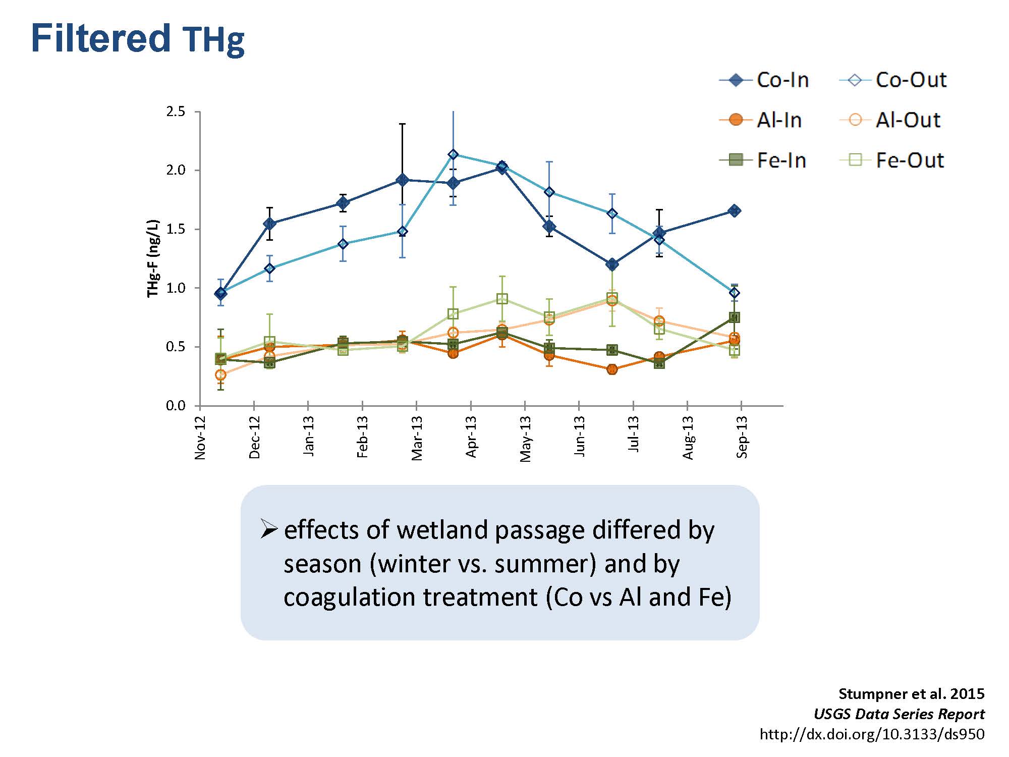 However, in other seasons, it wasn’t so simple, she said. “In some other months, even though you might have seen a loss of the particles, you also saw an increased in the filtered mercury fraction, so there was some production going on due to passage through the wetlands. But .. however, you still saw an overall benefit, so you took a lot out but then you added some more in. But not more to make it worse than not doing anything.”