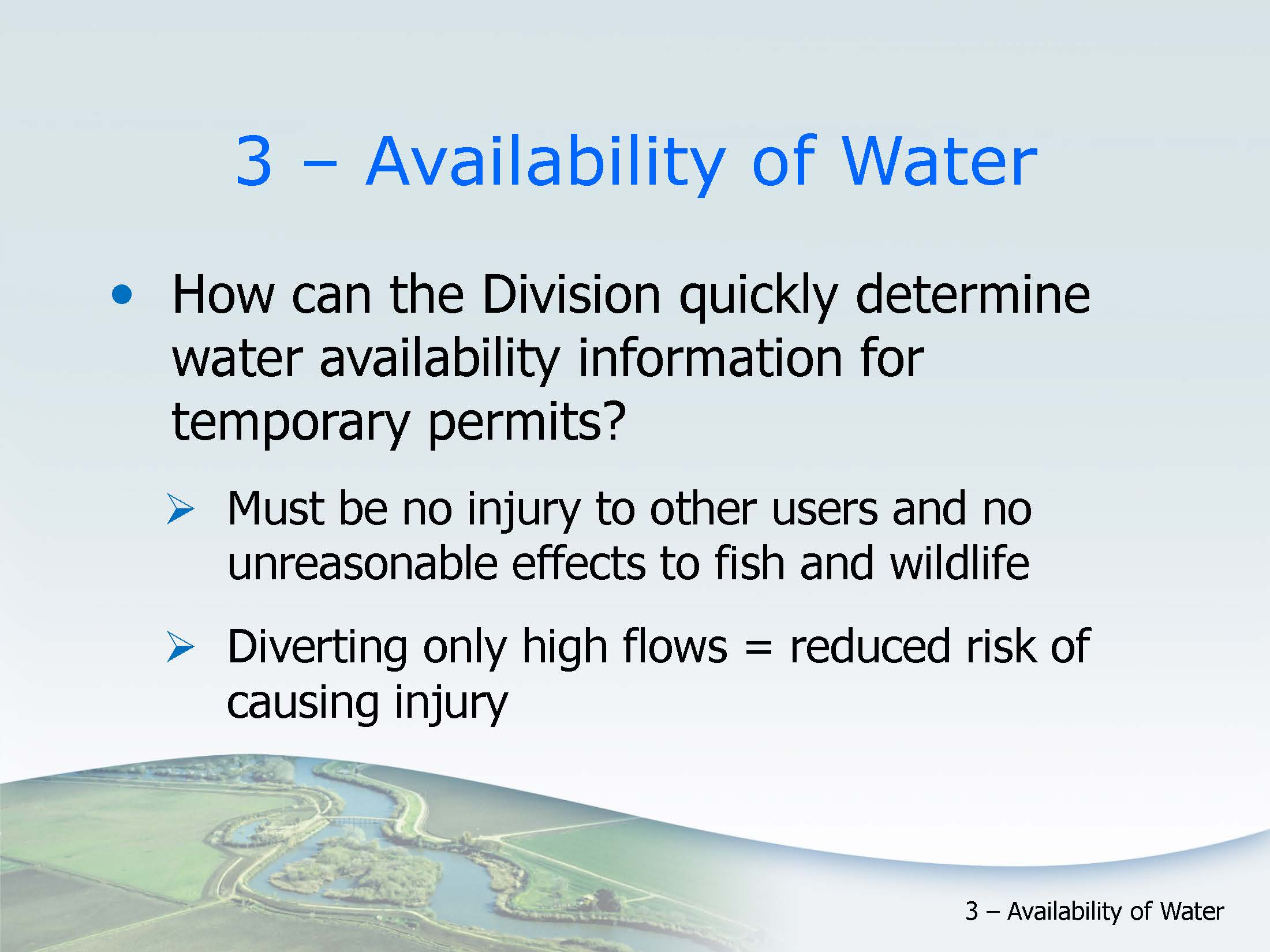 Question #3: How can the Division quickly determine water availability information for temporary permits?