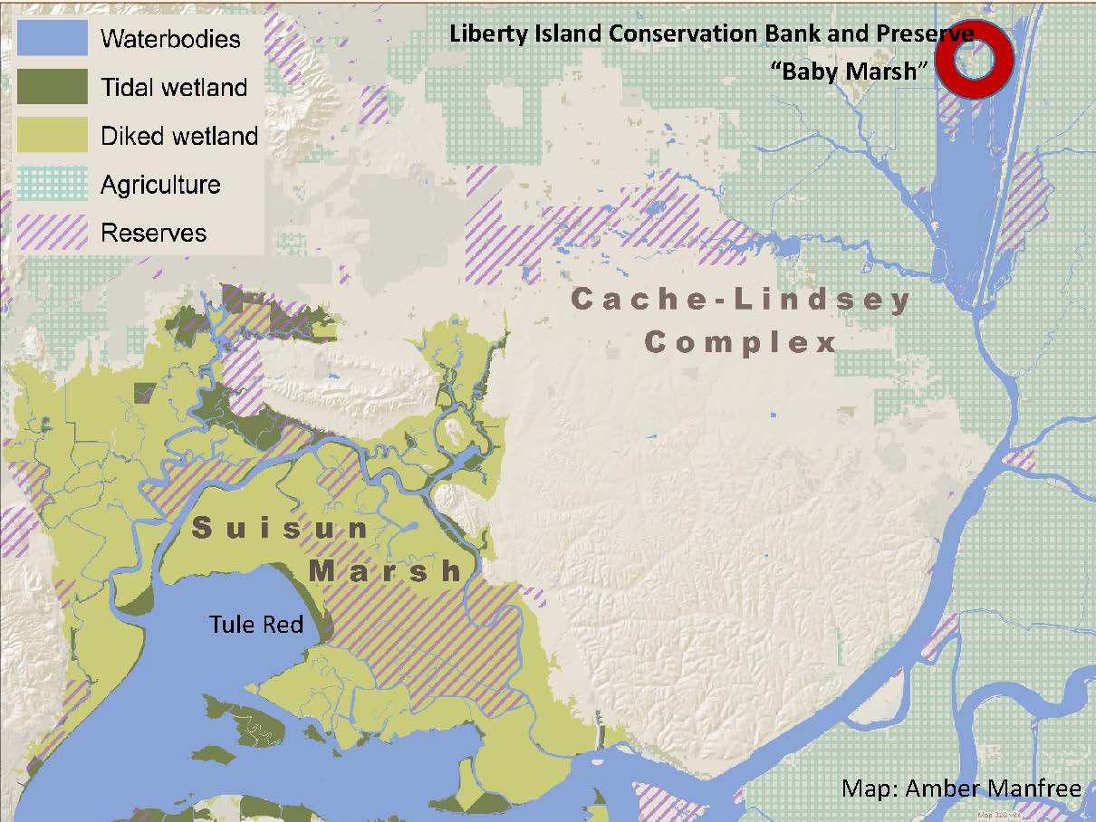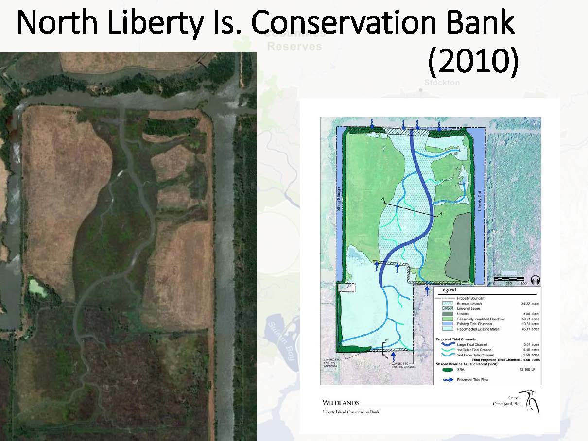 He began with two restoration sites in Suisun Marsh: the Luco Pond or Potrero Club which has been recently acquired by Westervelt, and the Blacklock restoration site, which was breached a few years ago. They have had the opportunity to survey both these sites for a number of years.
