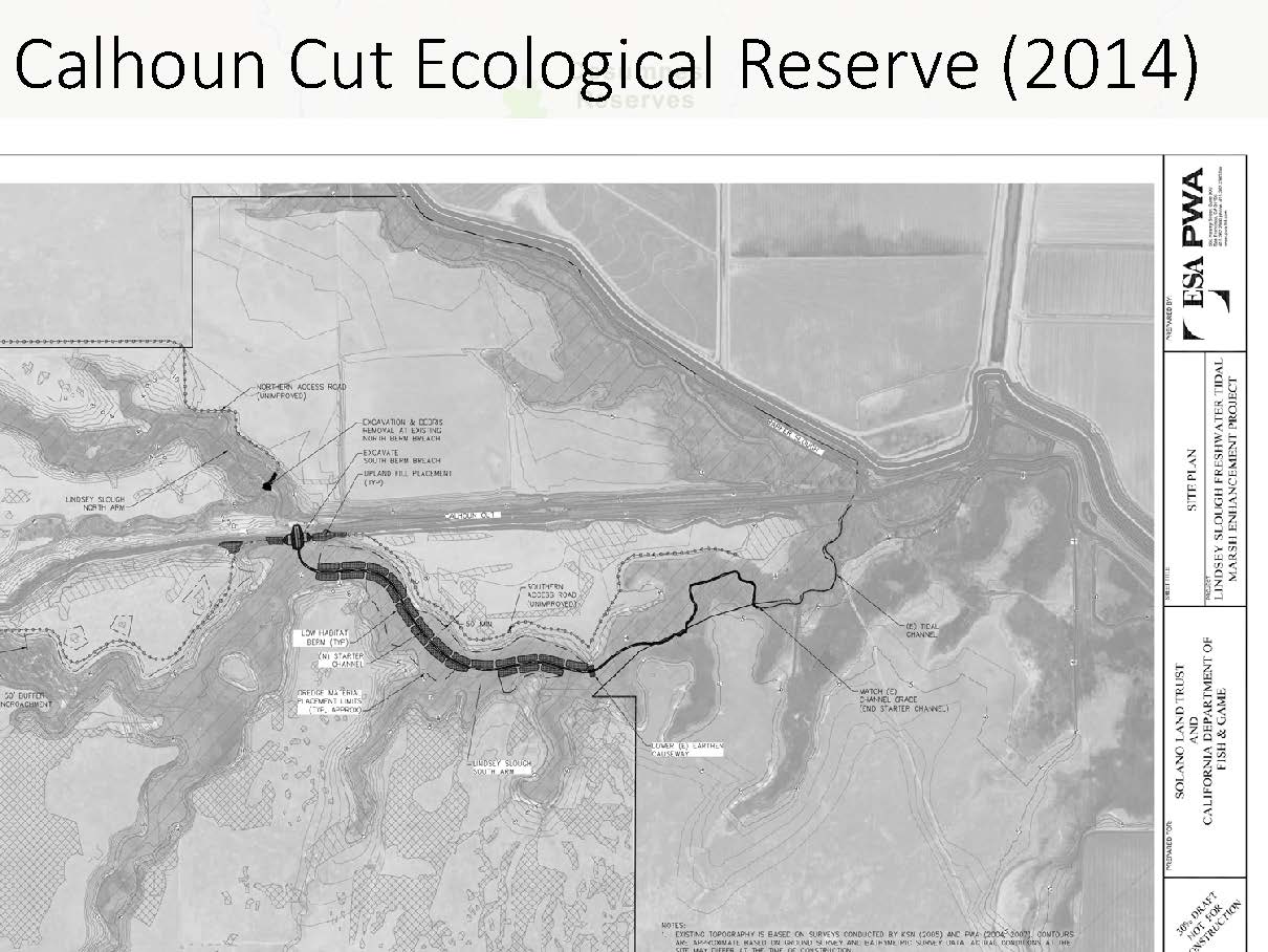 “I’d also like to cutoff Calhoun Cut which is a huge reservoir that blocks and mutes tidal energy in the system, and I’d like to allow that energy to go up through Lindsay Slough,” he continued. “I also have some wild plans to reconnect these sloughs to upslope habitat, to reconnect things to seasonal watersheds that capture water and flush out the system.”