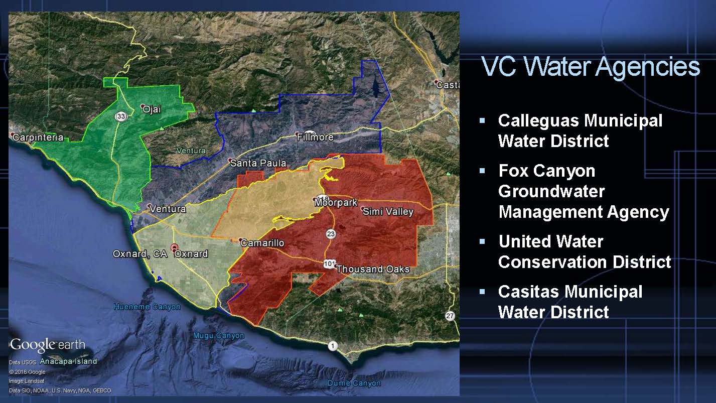 In terms of sustainability agencies, Santa Paula and the Ojai basin are adjudicated. The Fox Canyon Groundwater Management Agency was declared in the legislation as the named entity for its area, and a cooperative of three different entities, Camerosa, Fox Canyon Groundwater Management Agency and city of Camarillo are dealing with Santa Rosa Basin. The Upper Ventura River formed an agency recently and just had their first meeting.