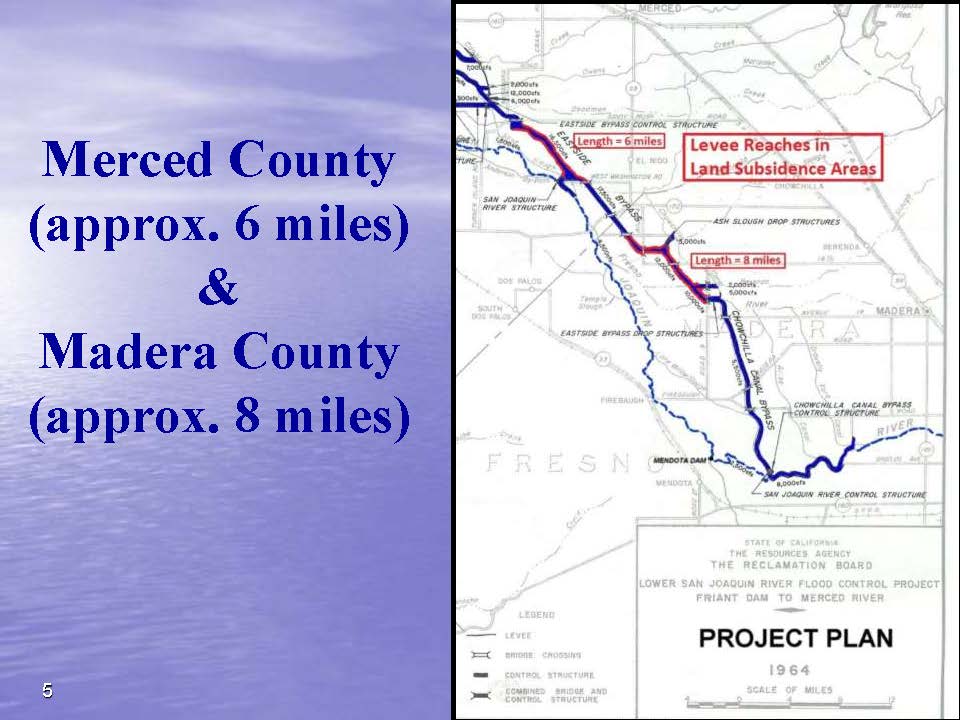 The Chowchilla and the East Side Bypass are flood bypasses that are going to need remediation eventually as they’ve lost capacity. There are two areas that are going to need some work and some remediation eventually where we’ve lost capacity. It is affecting 8 miles in Madera County and 6 miiles in Merced County. The capacity of the bypass is 16,500 cfs design capacity.