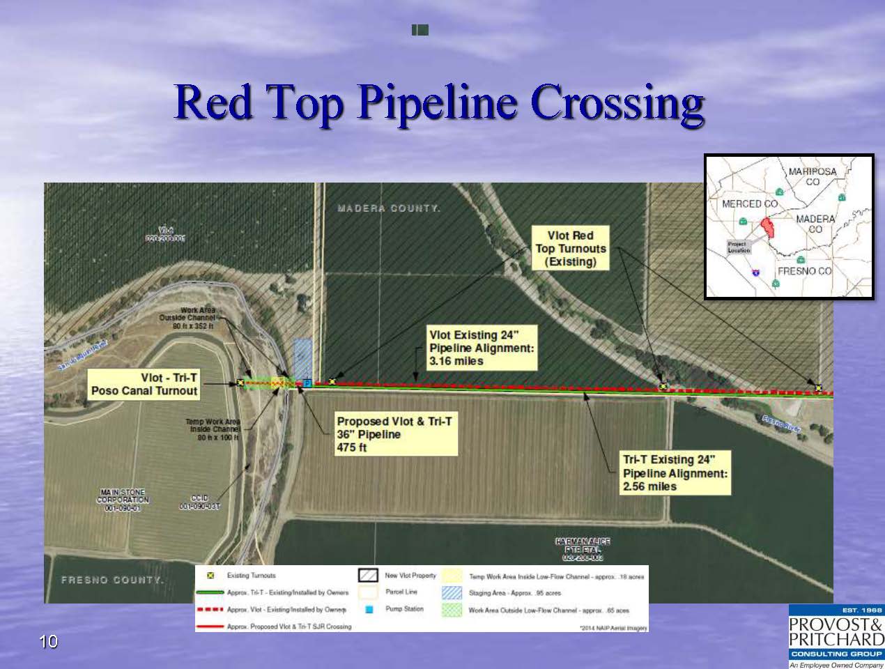 In addition, they need to get supplemental supplies to that area. “In order to get water directly into the subsidence area close to Sack Dam, we worked with the landowners on a plan to install a pipeline underneath the river on the west side from Arpozo Canal. You see there’s a red arrow towards the north part of that map is where that pipeline is located. We just finished it. We have built this project all the way to the connections. The connections are not quite completed yet but that can be done after these flood flows are out of the system. ”