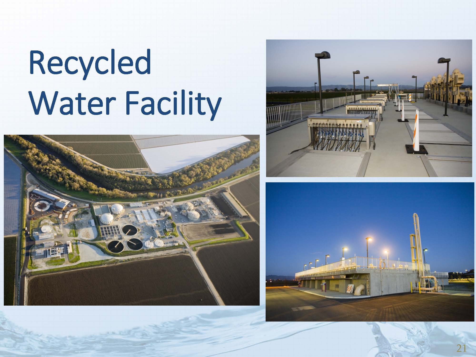 In order to balance the basin and stop sea water intrusion, the agency has supplemental water supply facilities that deliver surface water to the area shown in purple on the map. The facilities include a managed aquifer recharge facility that has recharged 8,000 acre-feet since it was constructed in 2002, and a recycled water facility came online in 2009 with a capacity of producing 4,000 acre-feet per year.