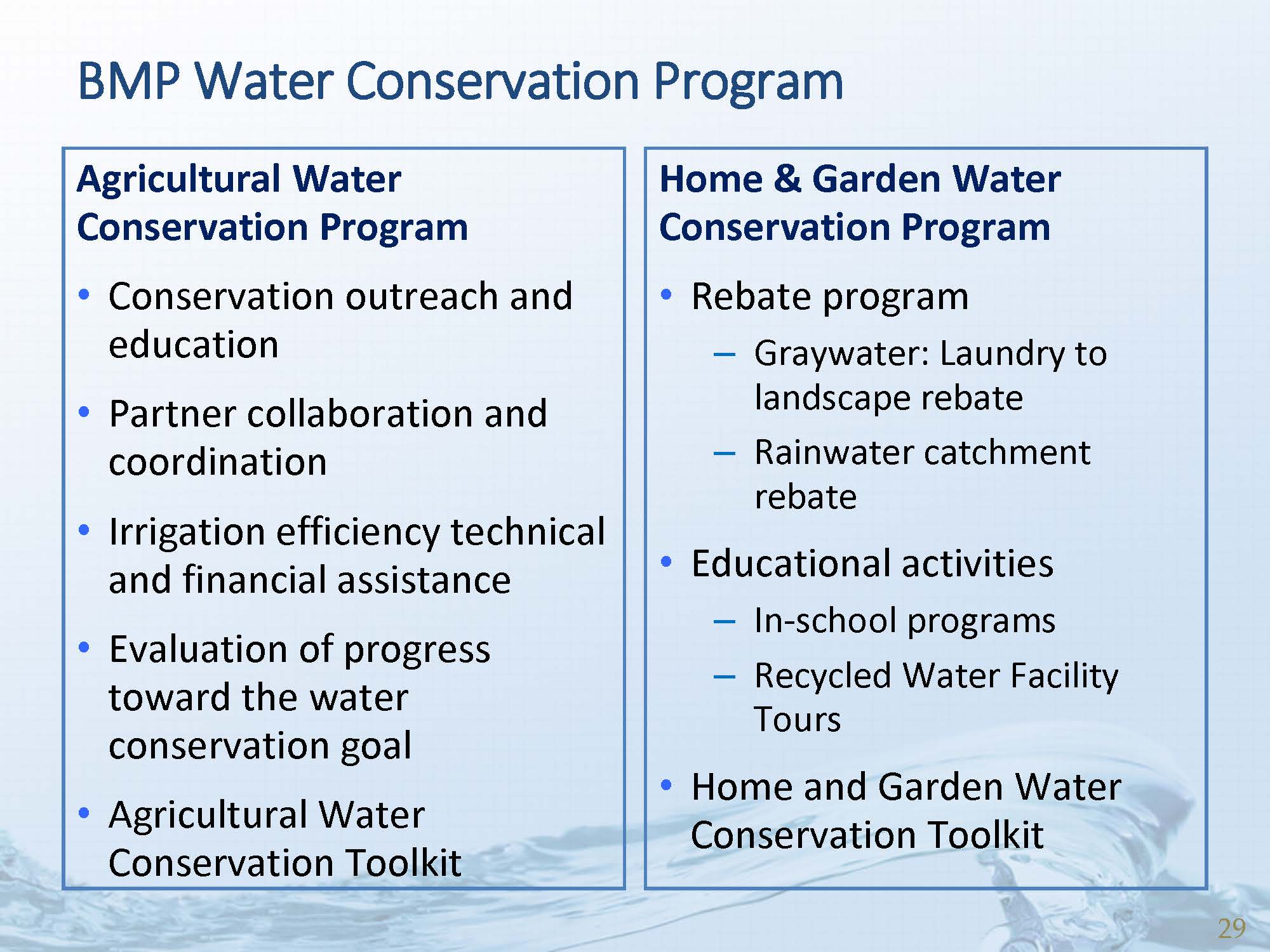 BMP Water Conservation Program