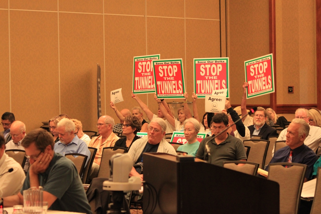 “No, I’m not arguing that we do nothing,” replied Mr. Brodsky. “The status quo is not acceptable. One of our great frustrations has been through this ten years that we’ve been involved in the BDCP process is that they are not willing to listen to any of our constructive suggestions about what could be done. I agree with Mr. Peltier in that there are farmers in the Central Valley, there’s an economy there, they have kids, these are real people who are affected by this. We understand that. It’s just that there seems to be one thing that’s been the same thing since 1982, and that’s they want a peripheral canal, they want to grab the Sacramento River, and put it in a pipe and send it to LA. That’s our problem.”