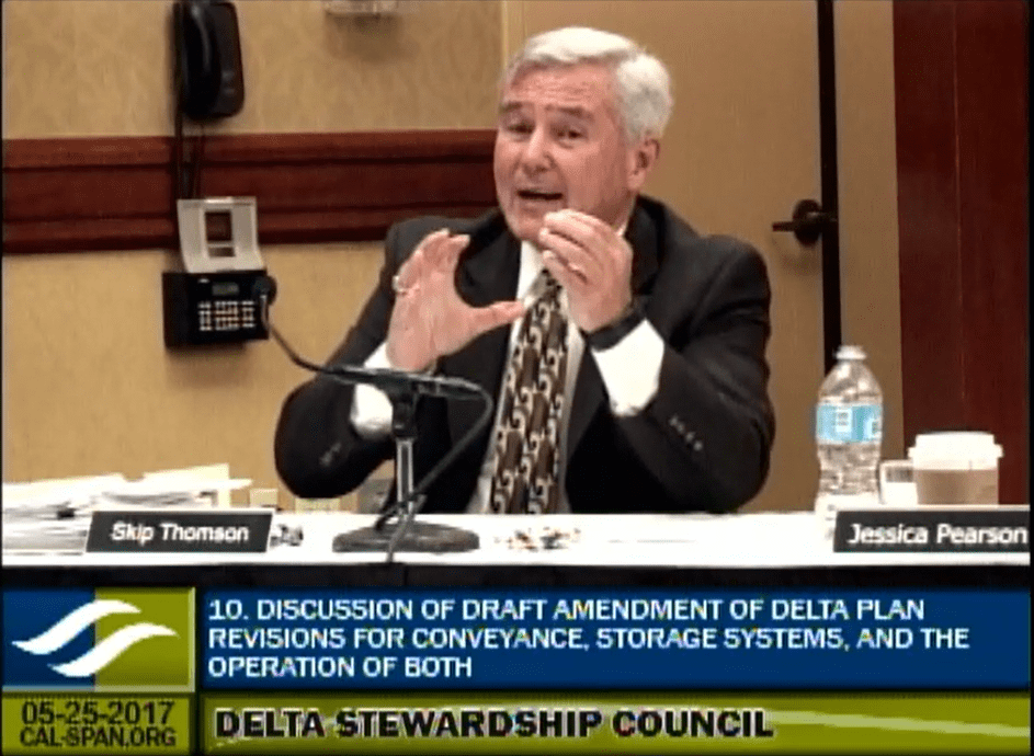 Councilmember Skip Thomson then gave his thoughts, noting that he has been reserving his comments, waiting for the public to make theirs. “As I sat here as a Delta Stewardship Council member, I was thinking, what is our charge? What is our responsibility? Some would say it’s to provide guidance for water supply that really reduces reliance on the Delta,” he said. “What I see before us on the conveyance, storage, and operations amendment is very narrowly focused on conveyance, and so reminding us, as we’ve been reminded all day, that the 2009 enabling legislation requires reduced reliance, achievement of coequal goals, and the measure of local self-reliance. In my opinion, these requirements aren’t met with what we’ve presented.”