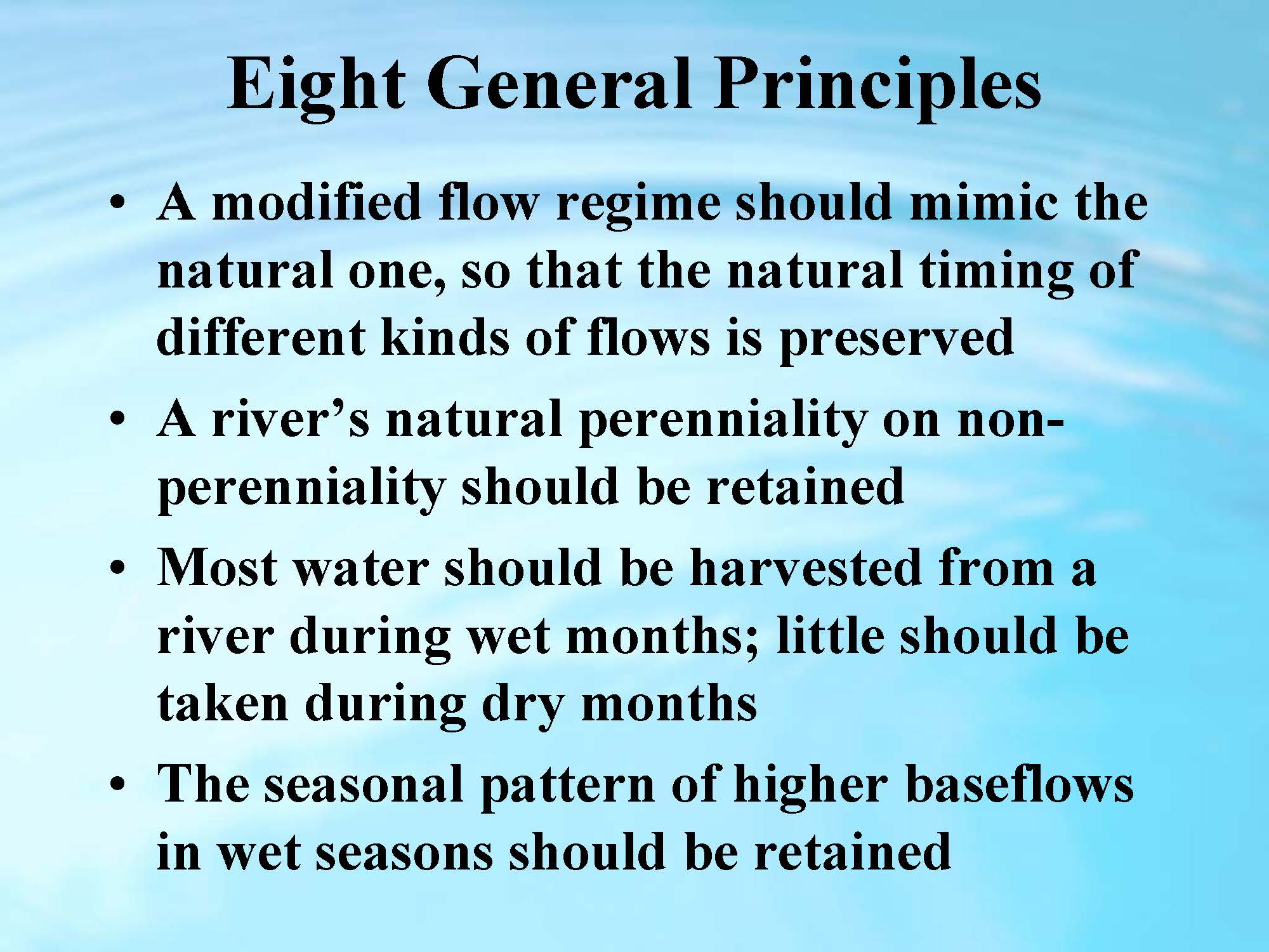 Scientists working in South Africa have been wrestling with what this means and how to implement this and so they have developed guiding principles that they are using to set flow criteria for their river systems in South Africa.