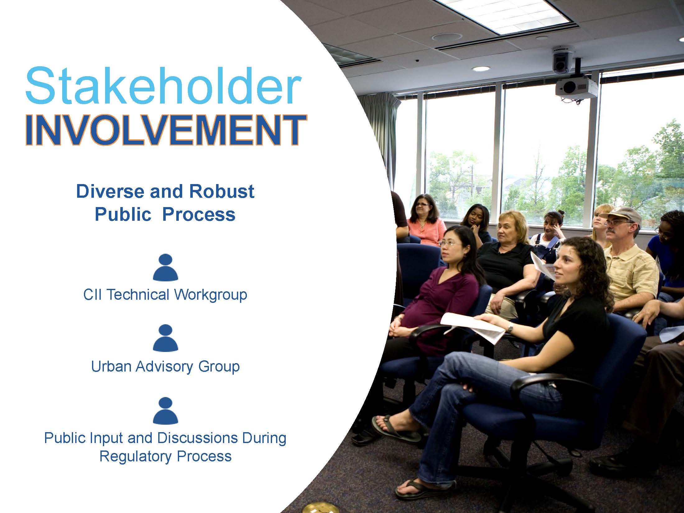 The framework calls for significant stakeholder involvement. The administration also identifies a dedicated CII technical workgroup and an urban advisory group, along with public input discussions during the entire regulatory process.