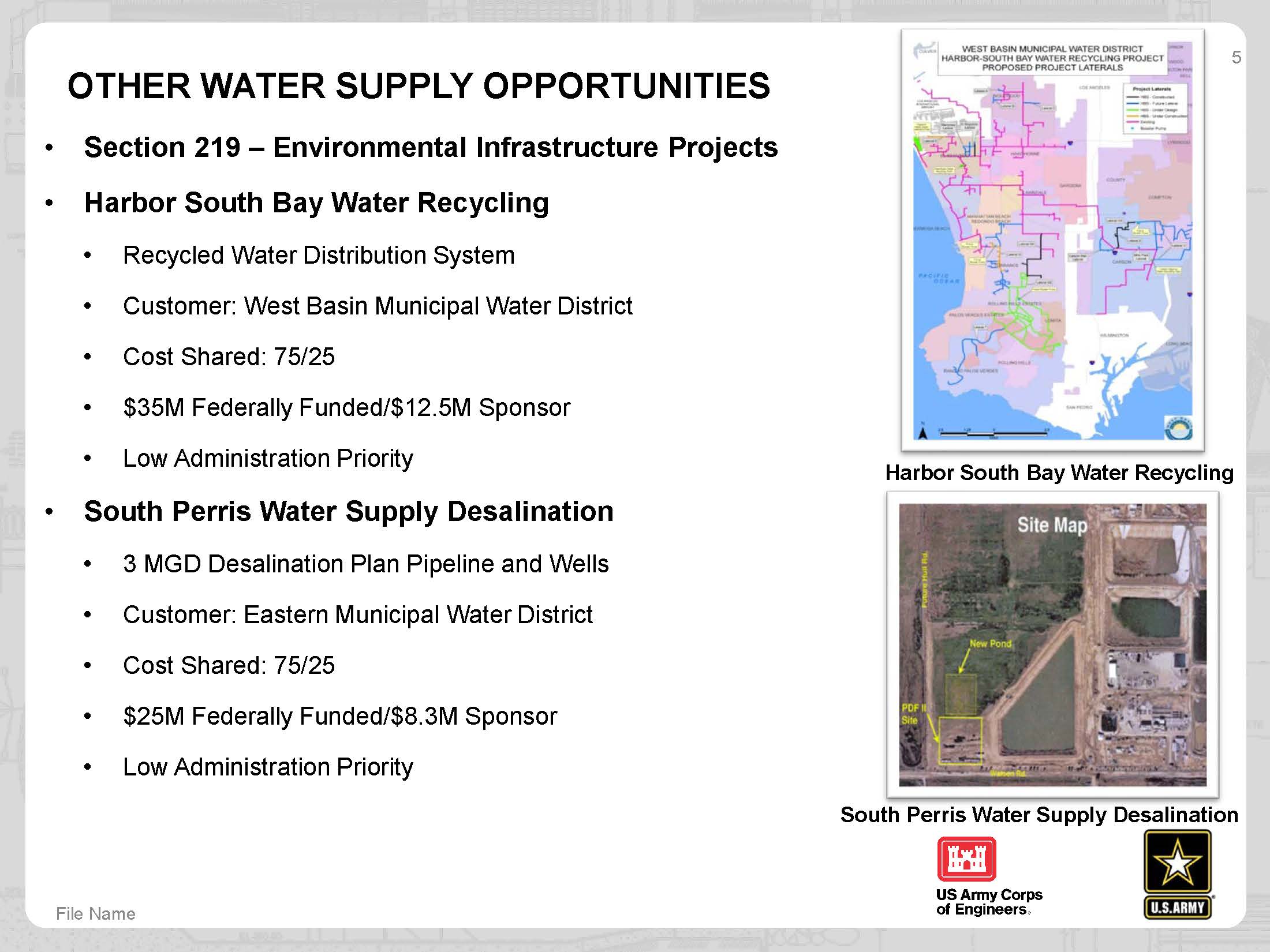 There are two other water supply projects the Corps is working on; they are Section 219, environmental infrastructure projects: