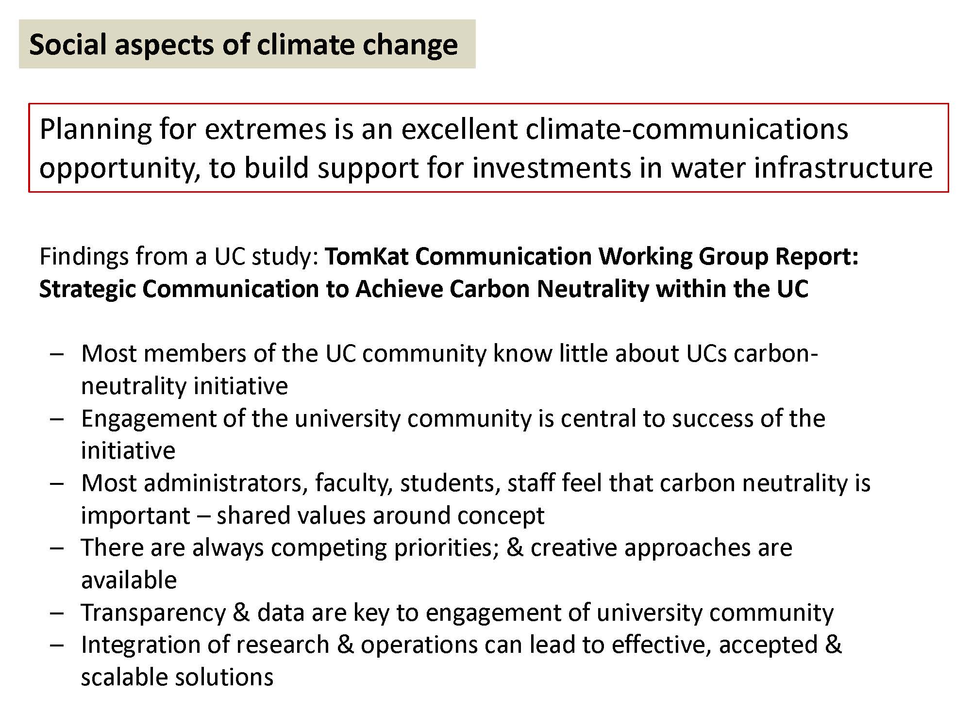 Dr. Bales said while we may have some technical solutions for climate change, we also need to focus on the social aspects, and planning for the extremes is an excellent opportunity for climate communications, both within state agencies and decision makers statewide. “I think a lot more can be done there,” he said. “We need to build support for investments in water infrastructure. We all know that it goes well beyond the four billion or so that was in the recent bill in the legislature. How do we get there? How do we build that support?”