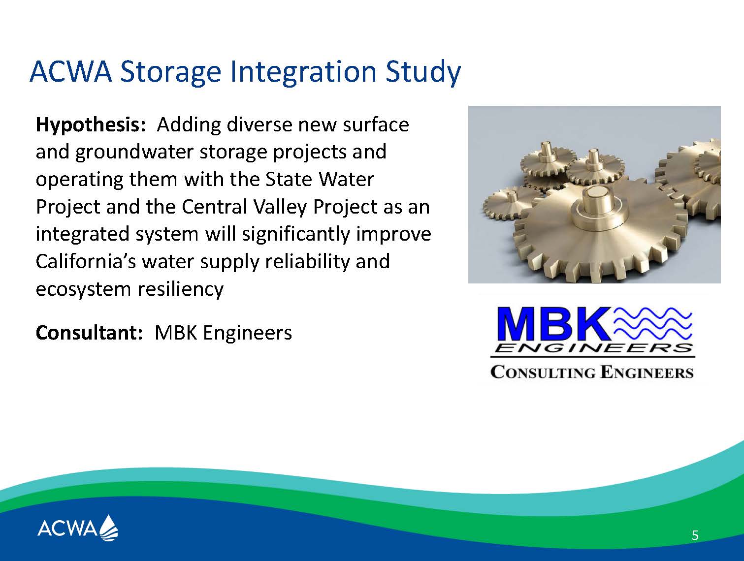 The study was performed by MBK Engineers; they used the suite of projects that many ACWA members were working on, many of which were anticipating applying for funding under the Water Storage Investment Program. “They all bring different kinds of assets to the table and different ideas, and so we took the conceptual stage of those projects that was available to us about a year and a half or so ago when we started this modeling exercise,” Mr. Bolland said, acknowledging that some project attributes may have changed a little bit since then. “We’re not taking those to the bank necessarily, that’s just what we used in our modeling. You will see that there are two projects there that didn’t actually apply in the end, but they still potentially helpful projects to look at ways in which you could use the water assets in different parts of the state to advantage.”