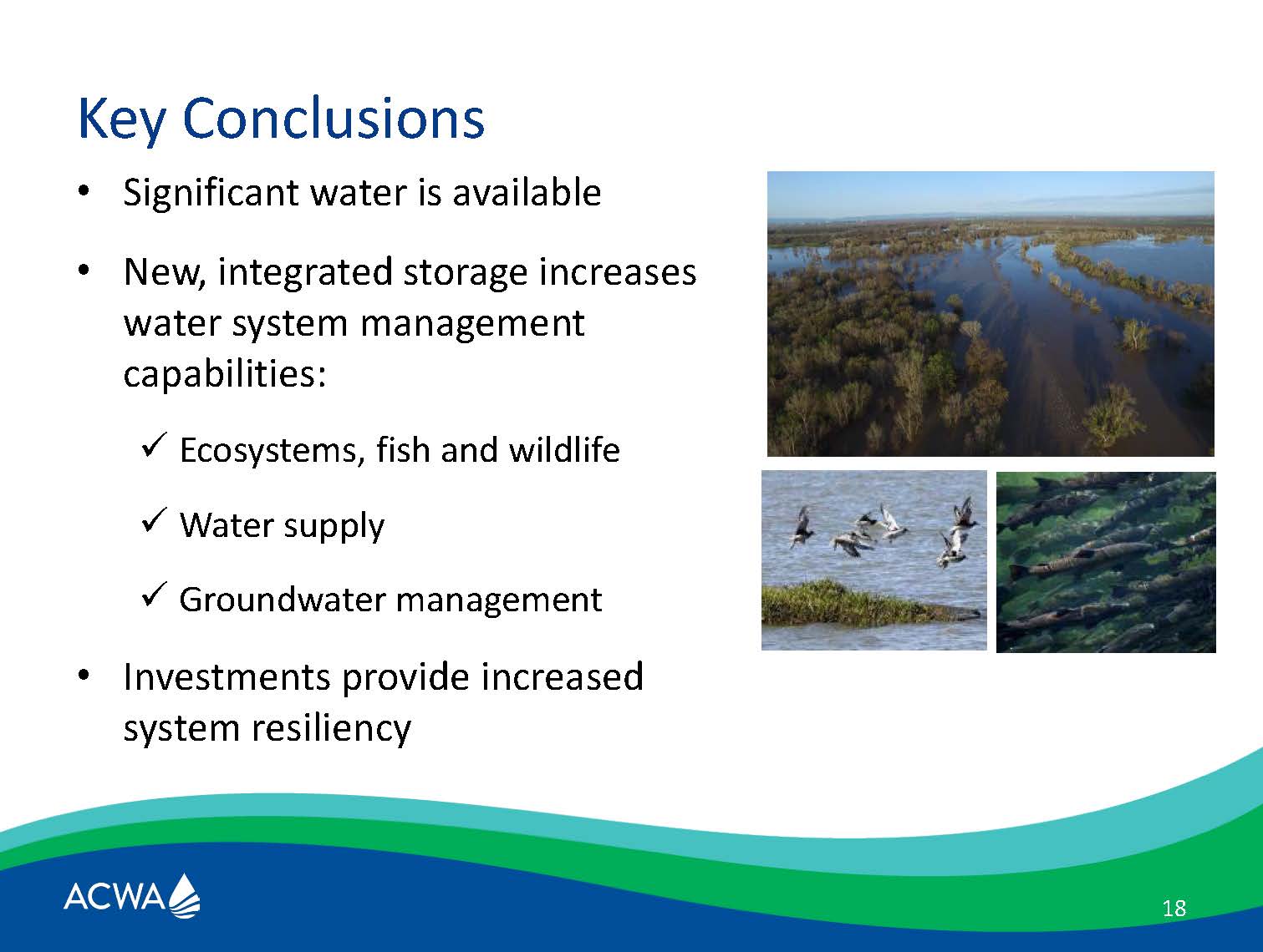 “So the key conclusions were significant water is available, new storage increases our capabilities particularly for ecosystem management as well as for water supply and groundwater management, and we have a more resilient system that we can be using to adapt to climate change going forward, as well as all the other challenges that we face.”