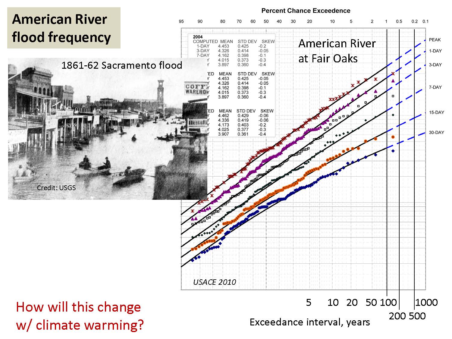 The modeling period for the study was historical; they did not model for future climate change. Mr. Bolland noted that there are a lot of parallel efforts on characterizing the proper regime for climate modeling, so they decided they would tackle what is known about the historic hydrology as the premise for their particular exercise.