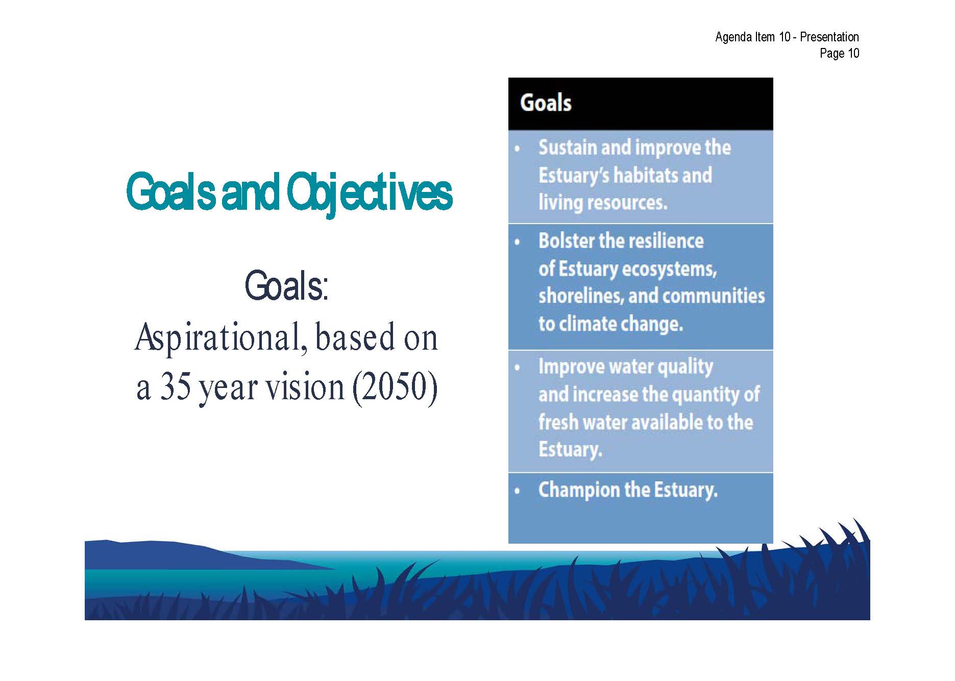 Ms. Sweeney summarized the 32 actions of the Estuary Blueprint: