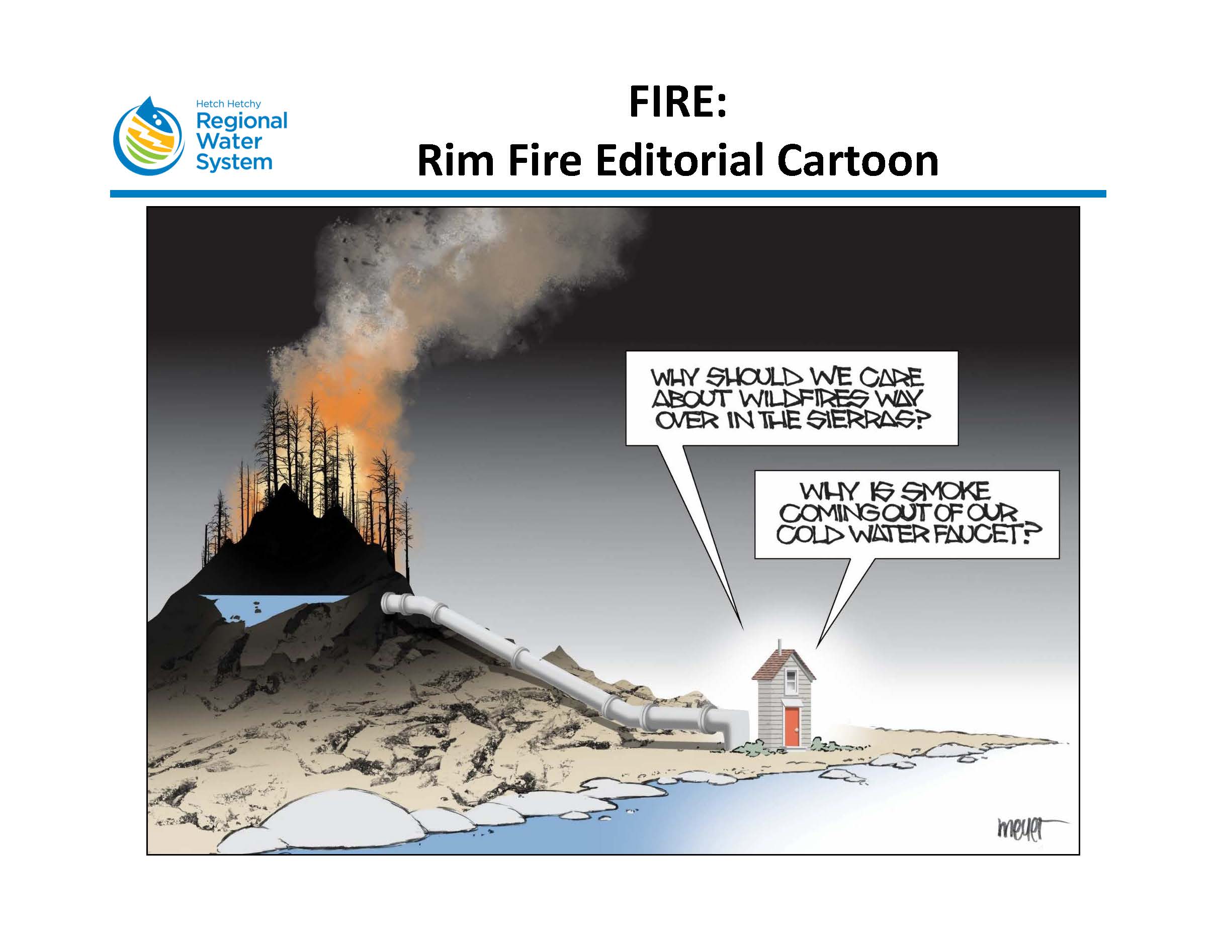 “That was followed by this beautiful editorial cartoon from the San Francisco Chronicle that I continue to enjoy to this day because I really want to emphasize the importance of our water sheds. It wasn’t that the concrete was going to burn; it’s that our watersheds could burn and could adversely affect the drinking water quality for a lot of people.”