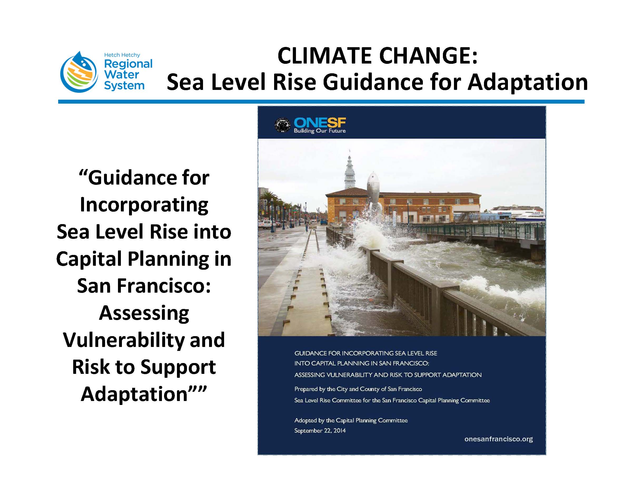 “Climate change this is something we obviously have to deal with. Something that San Francisco has done is to develop guidelines for incorporating sea level rise into planning for capital projects in San Francisco. All city agencies are obligated to follow this guidance to recognize that sea level rise is here. Tor our sewer system in particular, this is really critical to how we deal with sea level rise because we have points where water flows out; we don’t have points where water flows in, so water is bad for sewage treatments so we really have to deal with that issue in a big way.”