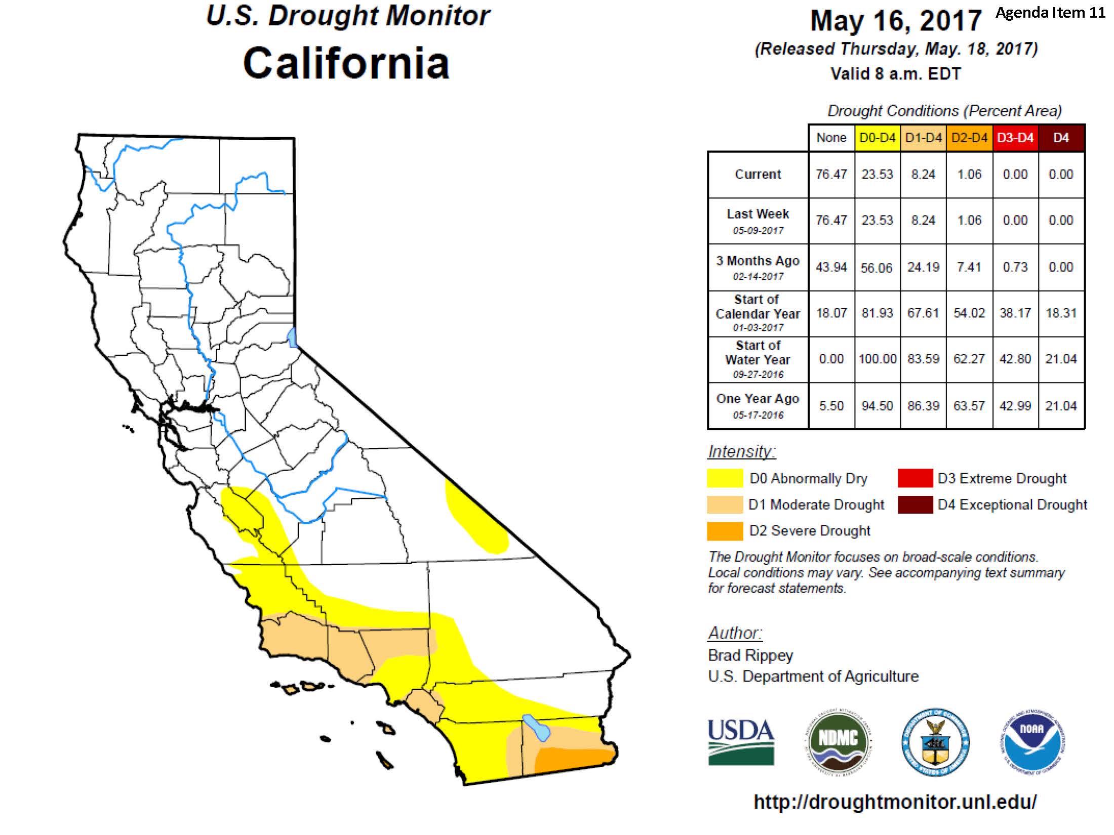 In terms of the US Drought Monitor, prior to 2017, the entire state was in some sort of drought condition; the extremely wet 2017 brought all but about 8% of the state out of drought condition. As a result of the past year being somewhat subpar, about 1/3 of the state is back into some sort of drought as measured by the Drought Monitor, and 2/3rds of the state is abnormally dry.