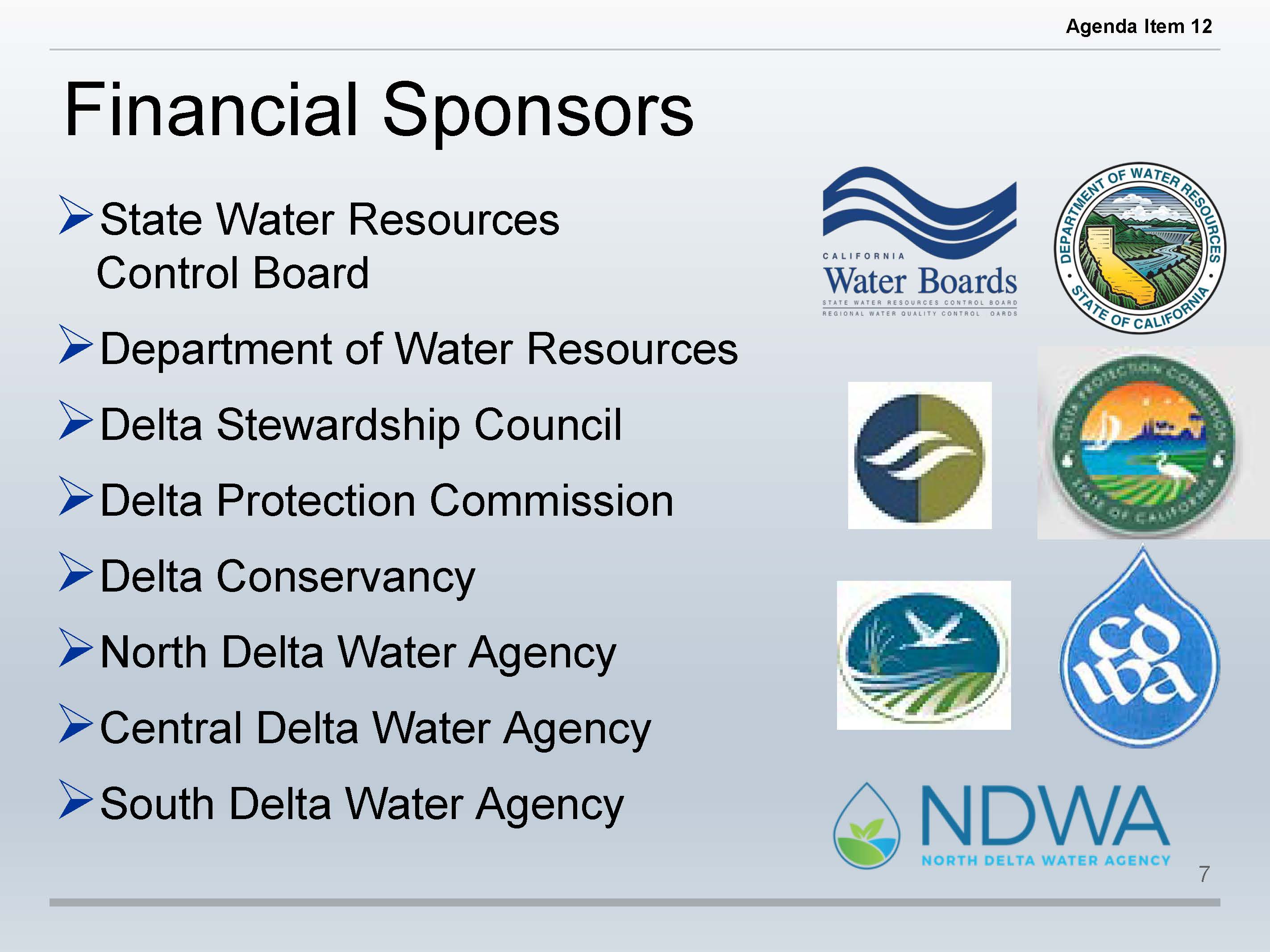 The study was funded by state agencies, including the State Water Resources Control Board, the Department of Water Resources, the Delta Stewardship Council, and the Delta Protection Commission as well as the in-Delta water agencies; there were also significant in-kind contributions. Research participants included the USDA, and private consultants.