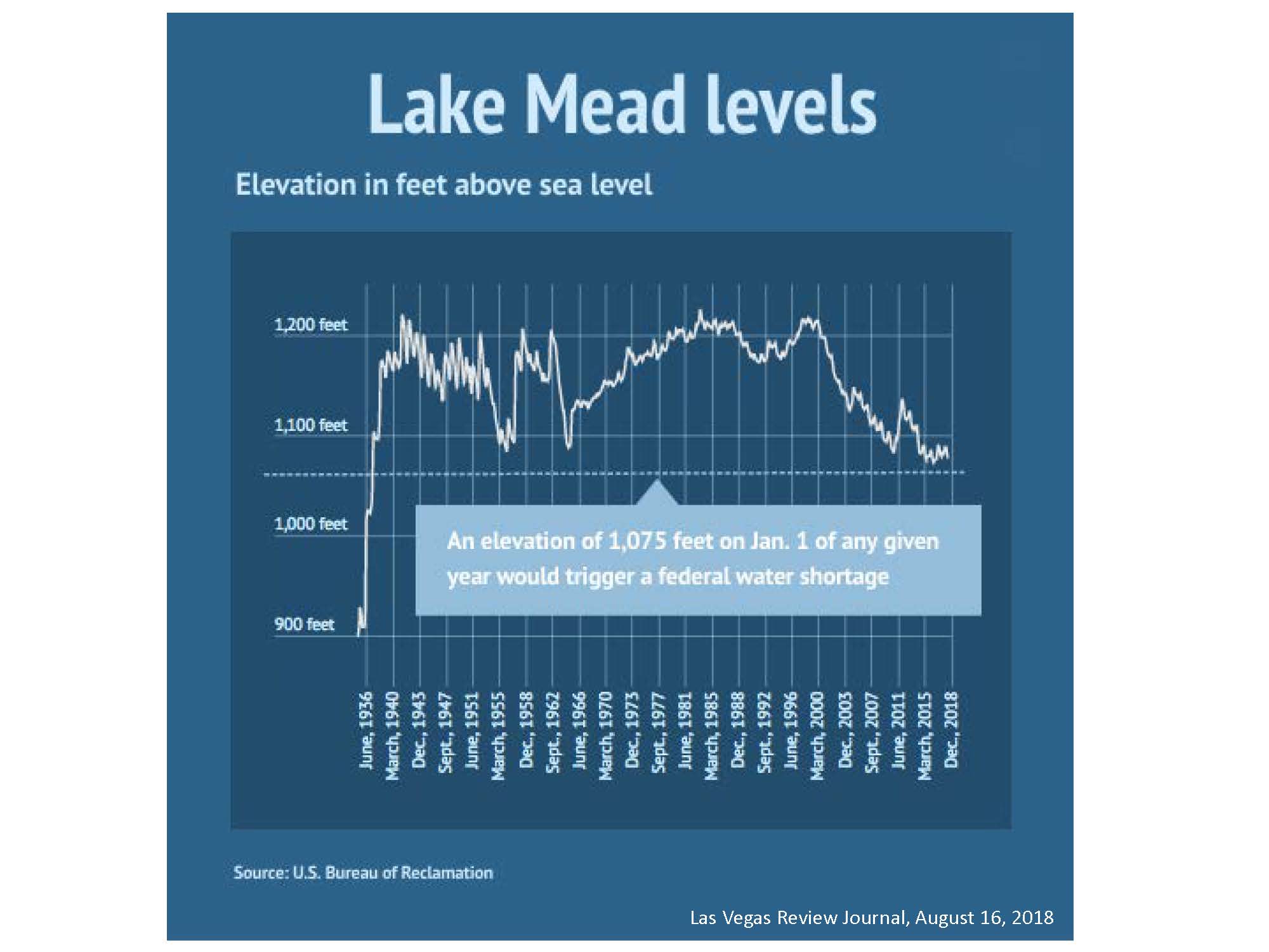 But while California reservoirs are in good shape, the prediction for Lake Mead is bleak, with the level nearing the critical line which is when the water levels fall below the intake level and hydropower capabilities cease, Dr. Famiglietti said. “We’re pretty close, and there’s a downward trend there, so when we back up and look at the big picture, there’s cause for concern.”