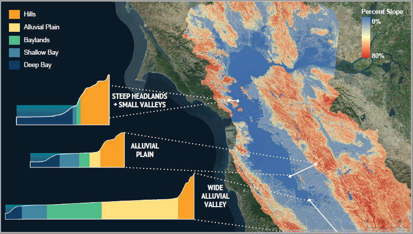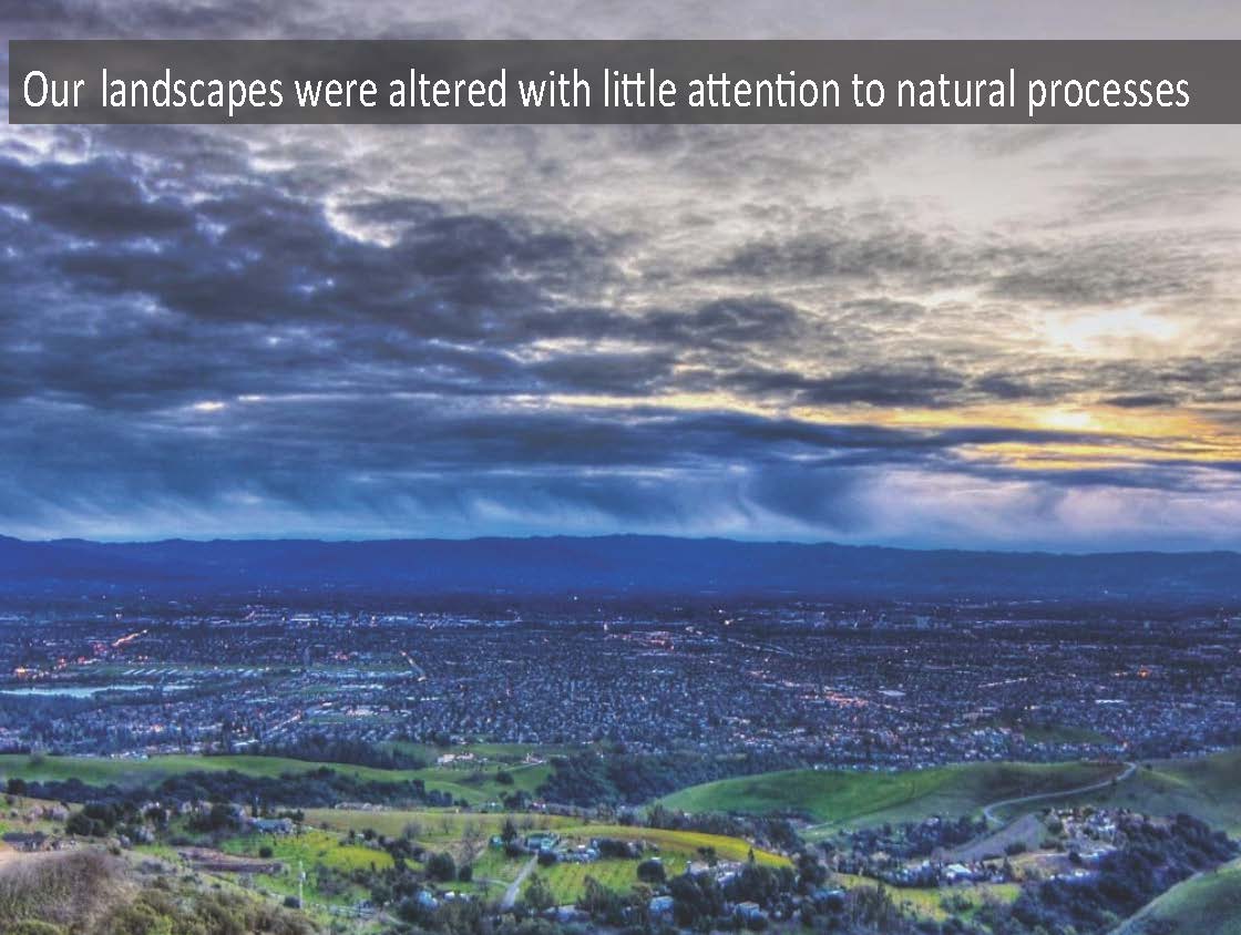 The pattern of development in the Bay Area and across most of California has highly altered the natural landscapes. Ms. Grenier showed a series of before and after slides to demonstrate the difference: