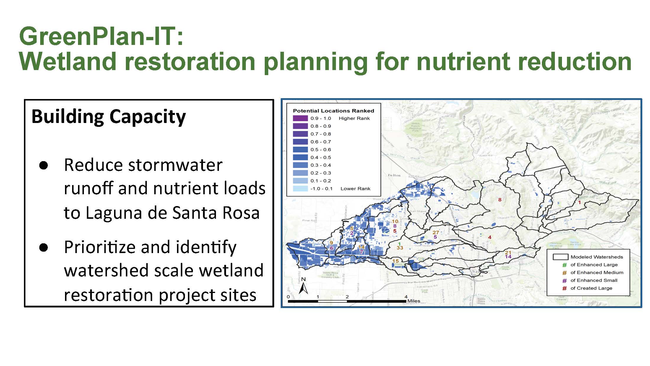 “So if we use this tool that’s a hydrological model that optimizes the placement of those for water quality, we can then extend it to some restoration,” she said. With the Laguna de Santa Rosa project, they used the technique to look at where to do wetland restoration to improve nutrient processing, and in the Silicon Valley, they are looking at where to plant native oak ecosystems to both reduce flood peaks and also improve water quality.