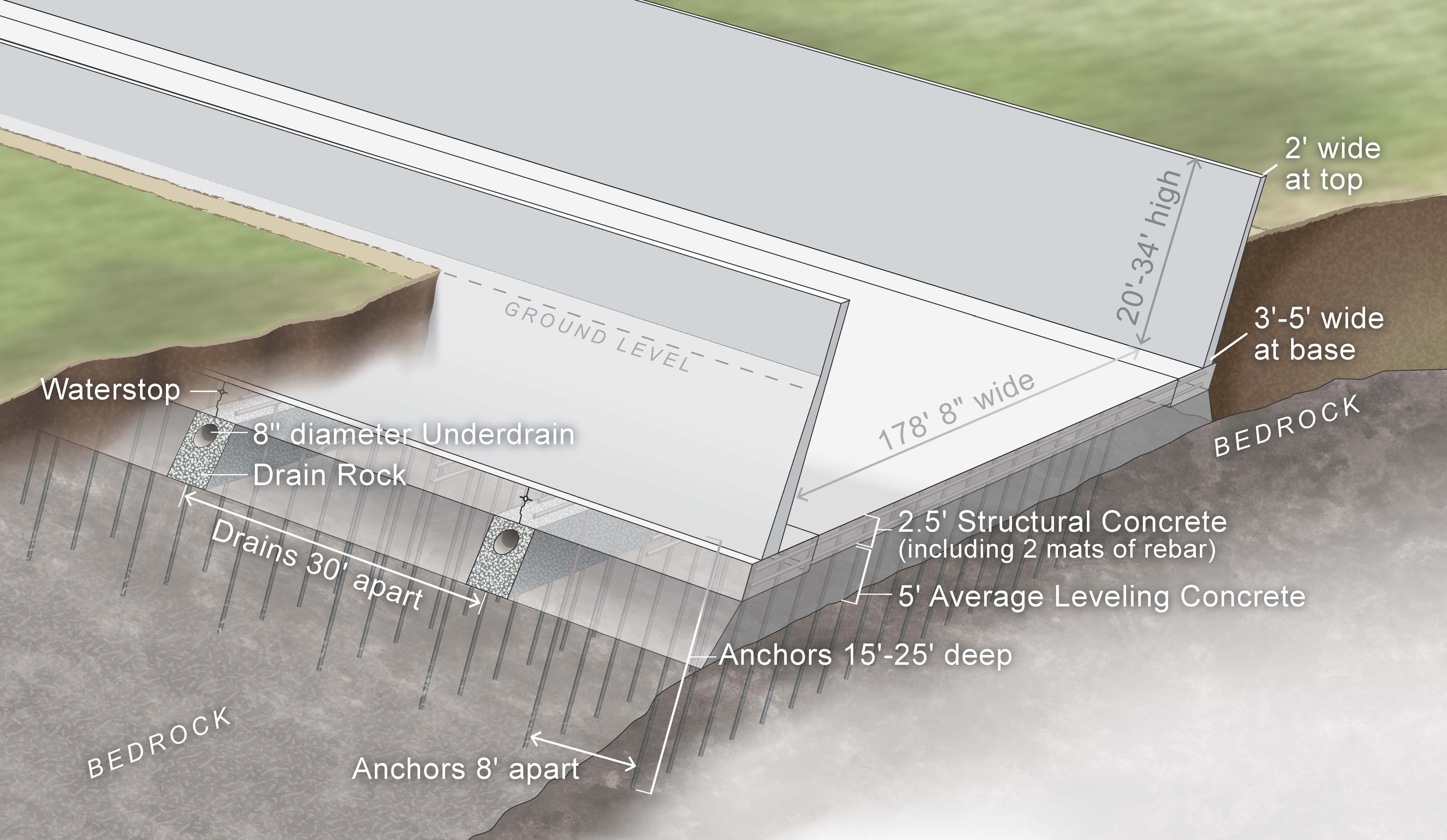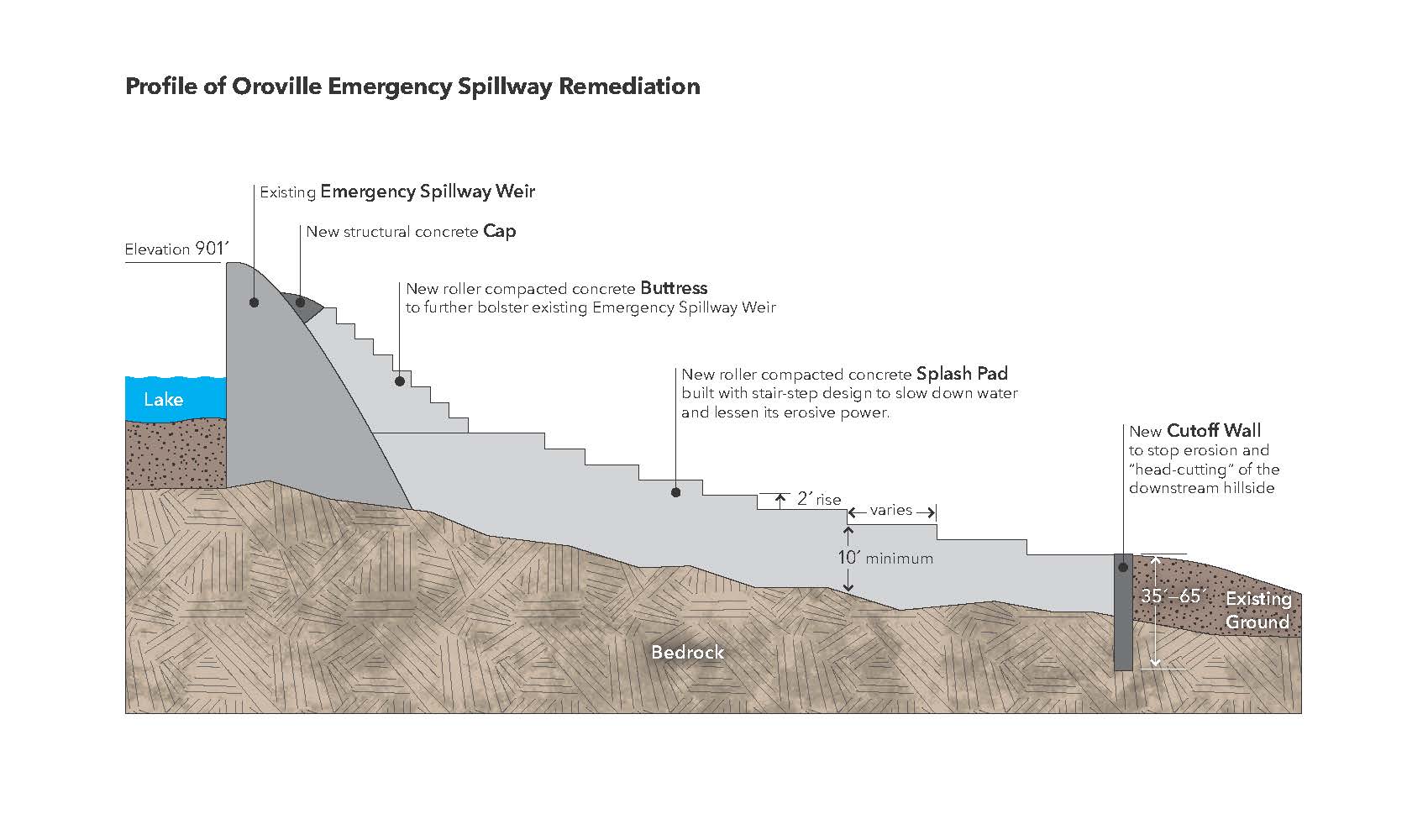 - Crews also completed construction of the RCC buttress at the base of the emergency spillway earlier this month.
