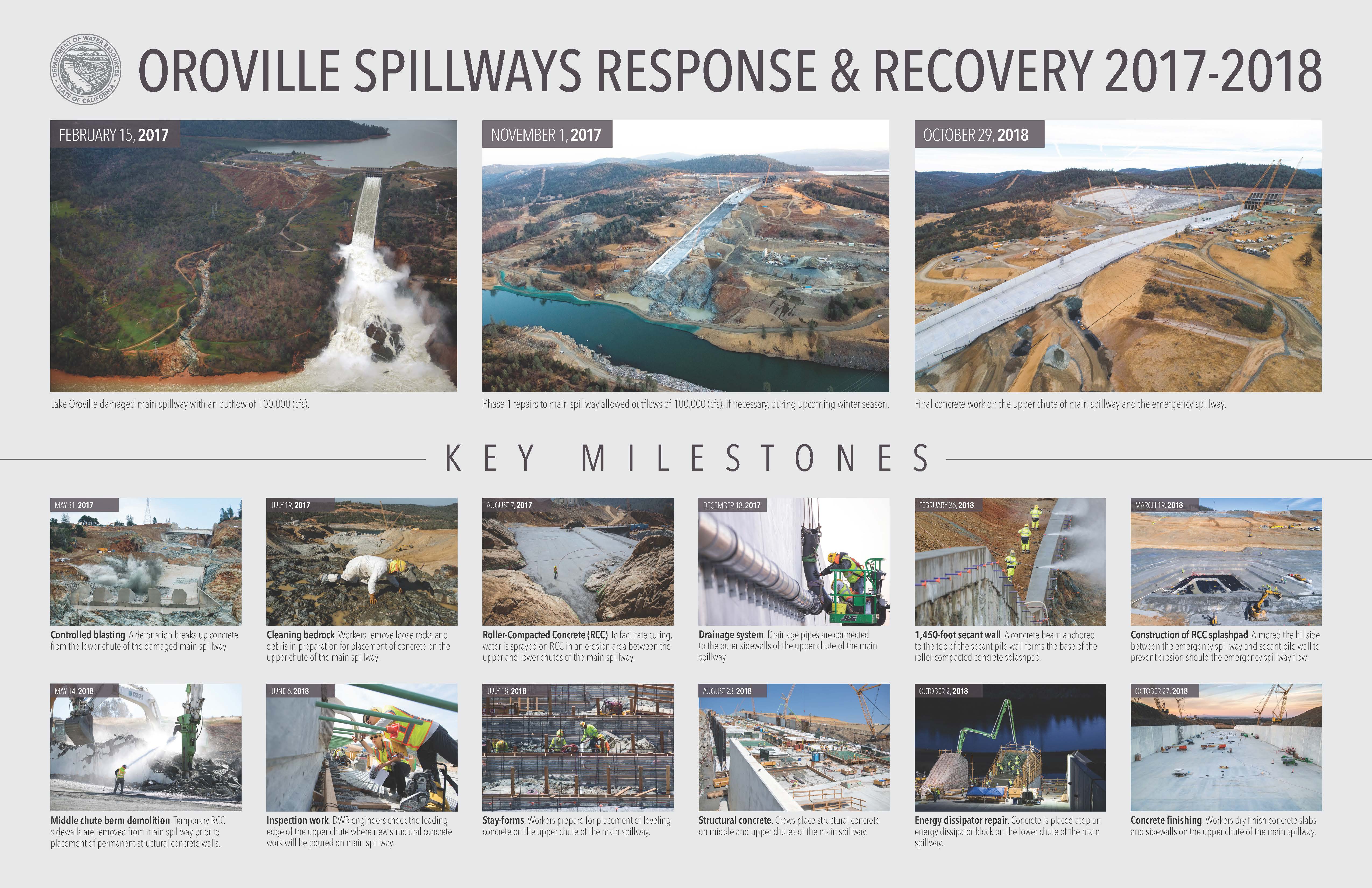 The Department of Water Resources (DWR) today announced it has met its goal of completely reconstructing the main spillway at Oroville Dam by Nov. 1 to be prepared for the upcoming winter. The newly constructed spillway is now built to its original design capacity of 270,000 cubic feet per second.