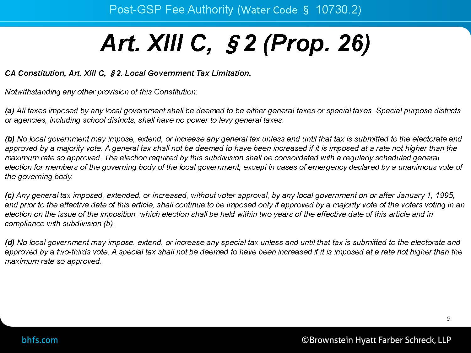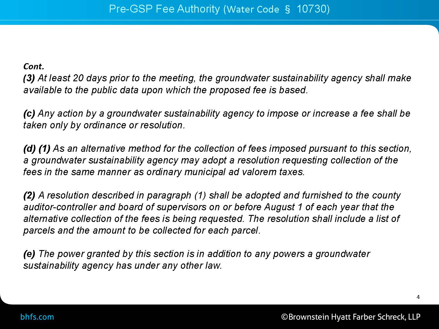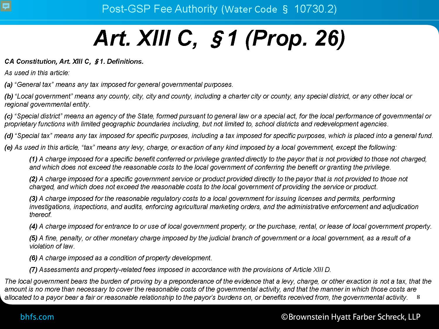 Second, there’s also a good argument that pre-GSP fees fall into this regulatory cost exemption because in water code section 10730, the section is actually titled, ‘Regulatory Fees Authority,’ so this indicates that the SGMA legislature actually intended these pre-GSP fees to fall into this exemption for a tax.