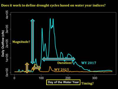 So they came up with various metrics using the Dayflow database to describe magnitude, duration, and the timing of any given water year, whether it’s drought or a wet year. They then compared those metrics to the drought cycles as they identified them, and the results were comparable.