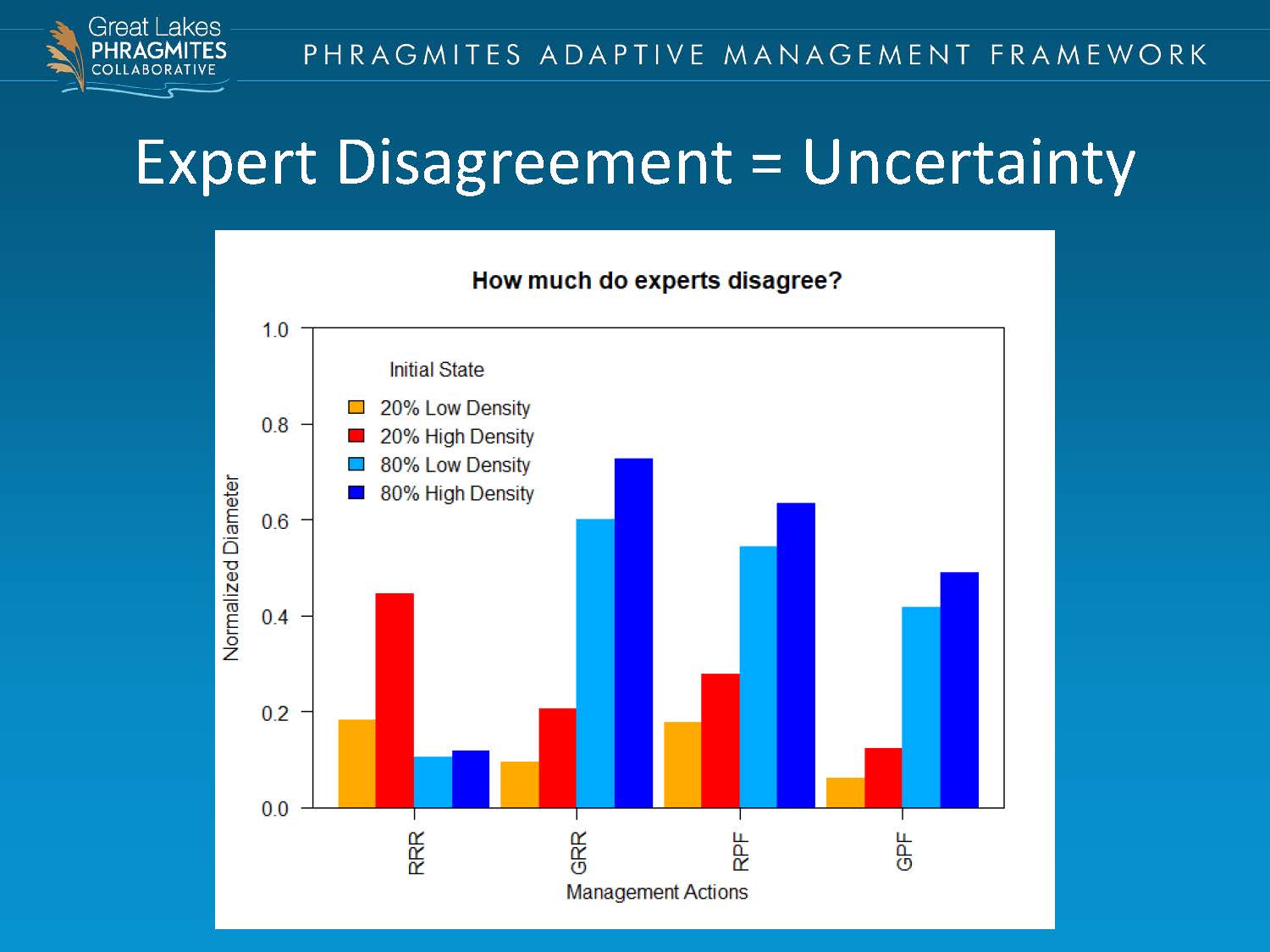 There are several tools that are conventionally used to manage phragmites currently: chemical treatments, prescribed burns, flooding it, or some combination of those. A core question is which of these are the most effective control measures for getting rid of phragmites? “Step one is getting rid of phragmites so this is our core question and core overall uncertainty,” he said. “In developing PAMF, we constructed an adaptive management approach to leverage all the work that is going on already on the landscape as data to come in to get those better data driven best management practices.”