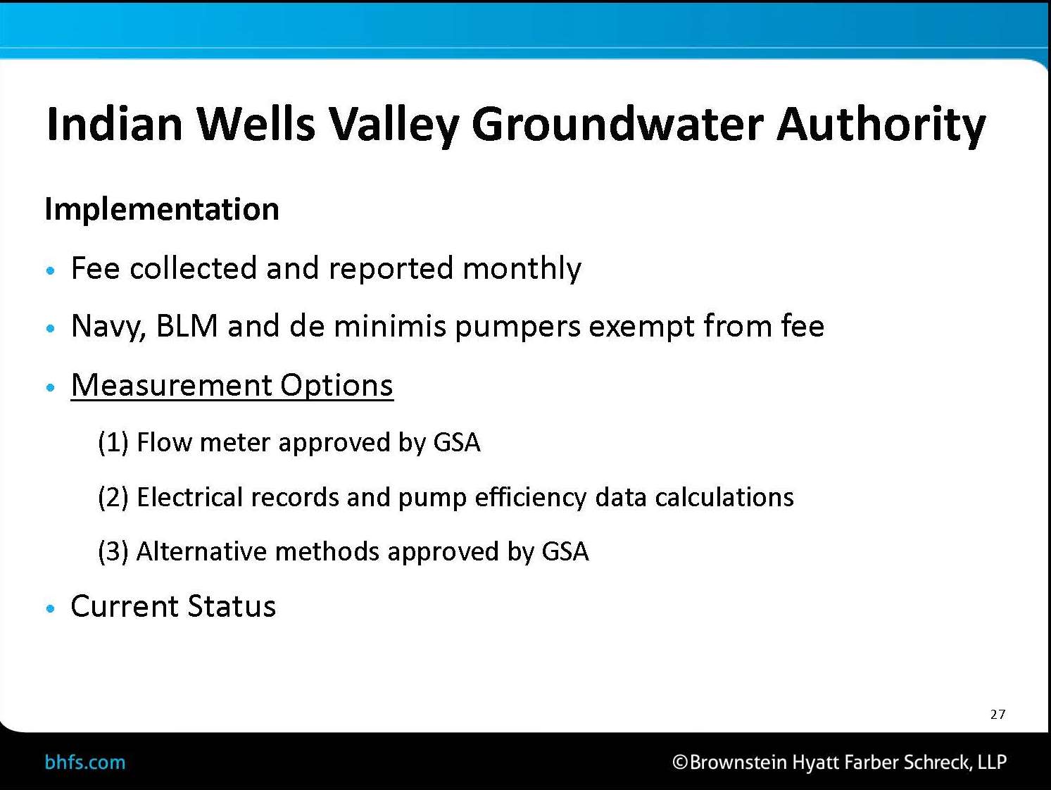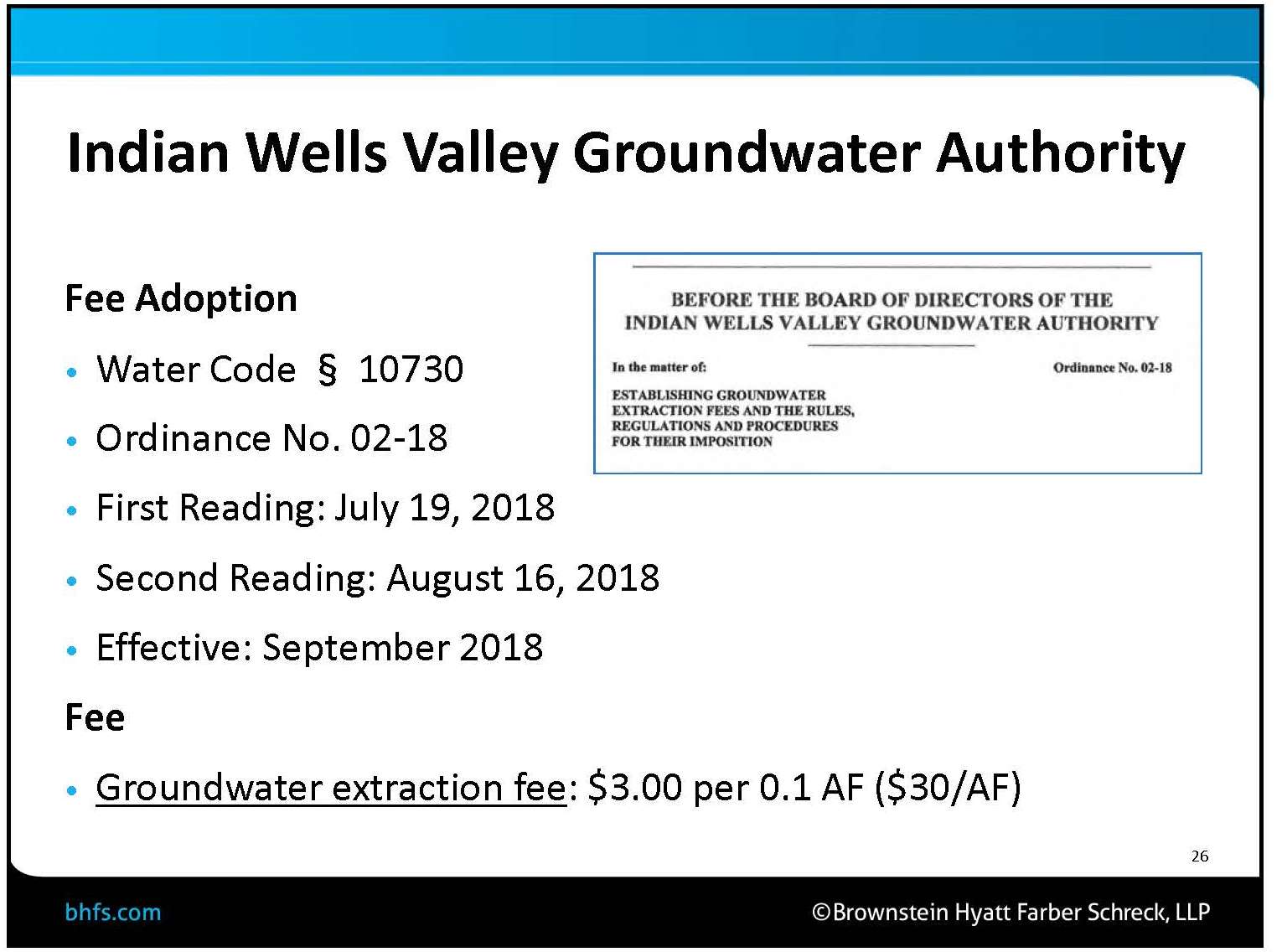 The Indian Wells Valley Groundwater Authority (IWVGA) is a high priority critically overdrafted basin who had the wherewithal and the need to get the fees in place early.