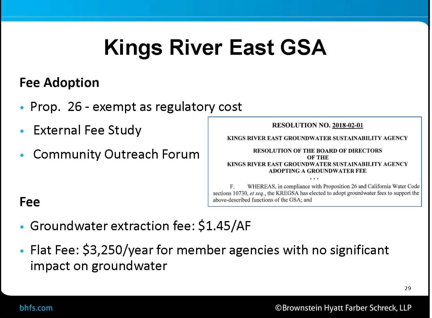 “The 45 day period is important as it will extend the timeline to adopt the fee, so that’s something to consider when the GSA is complying with Prop 218 for the post-GSP fee authority or even if they decide to go the Prop 218 fee authority route for pre-GSP fees,” she said.